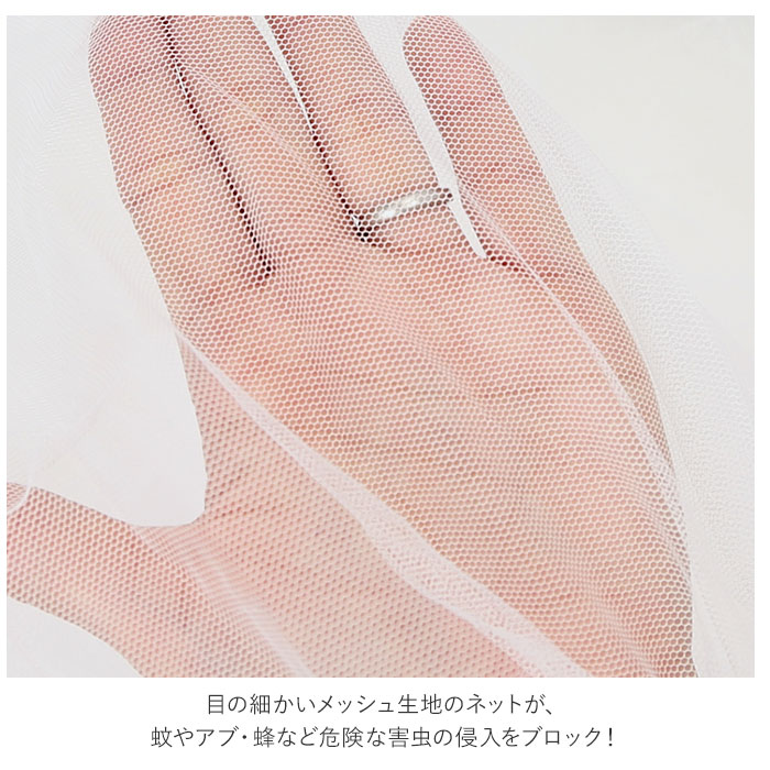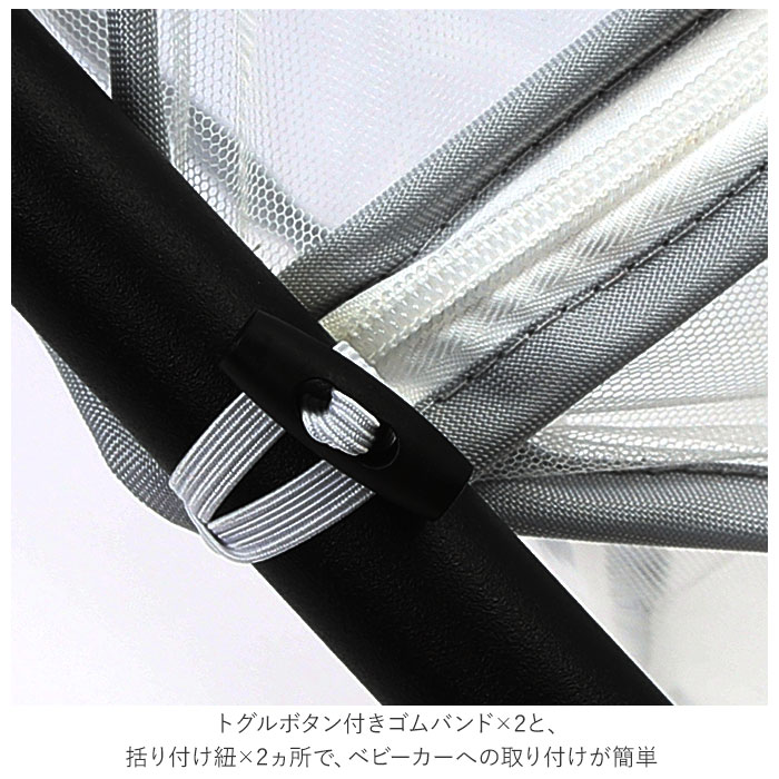 | ・すっぽり被せて、虫刺され防止!ベビーに優しい「ベビーカー用・日除け虫除けネット」。 ・目の細かいメッシュ生地のネットが、蚊やアブ・蜂など危険な害虫の侵入をブロック! ・トグルボタン付きゴムバンド×2と、括り付け紐×2ヵ所で、ベビーカーへの取り付けが簡単。 ・アーチ形のワイヤーフレームがフロント部分をすっぽりとカバー。赤ちゃんがベビーカー内部で動いても手をぶつける心配のない広々スペースを確保。 ・中央のフレームがダブルファスナーで大きく開くので、赤ちゃんのベビーカーからの乗せ降ろしもスムーズ。 ・ブラックやダークグレーのような色が濃いめのカラーは、日射しが気になる日の日除けネットとしても大活躍!デリケートな赤ちゃんの肌を守ってくれる安心仕様。 ・使用しないときは、折りたたんでクルっと丸めれば、持ち運びの楽ちんなコンパクトサイズに。 |