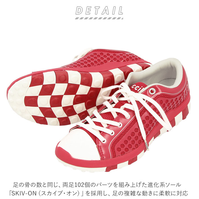 | ・超軽量・驚きのフィット感。ccilu(チル)のHORIZON BEYONDスニーカー(LADIESサイズ)。 ・足の骨の数と同じ、両足102個のパーツを組み上げた進化系ソール「SKIV-ON(スカイブ・オン)」を採用し、足の複雑な動きに柔軟に対応。 ・SKIV-ONソールの素材は、cciluが独自開発した合成樹脂ccilucell(チルセル)。卵を落としても割れない程のクッション性で歩行時の衝撃を吸収。 ・ccilucellは高い抗菌・防臭機能も併せ持っているため、いつも衛生的。 ・水に浮かぶほどの超軽量を実現。重さを感じさせない軽い履き心地。 ・通気性に優れた薄手のメッシュ素材で、足元爽快。 ・長時間履いても疲れにくく、ウォーキングやフィットネスにオススメ。 ・cciluならではのドット模様と個性的なバイカラーデザインでタウンユースにも最適。 「ccilu(チル)」とは・・・アマゾンの奥地で「緑の勝利」を意味する言葉。アマゾンで暮らす人たちが履いている草のサンダルから着想を得て造られた、素足の感覚に限りなく近づけた新感覚シューズ。 |