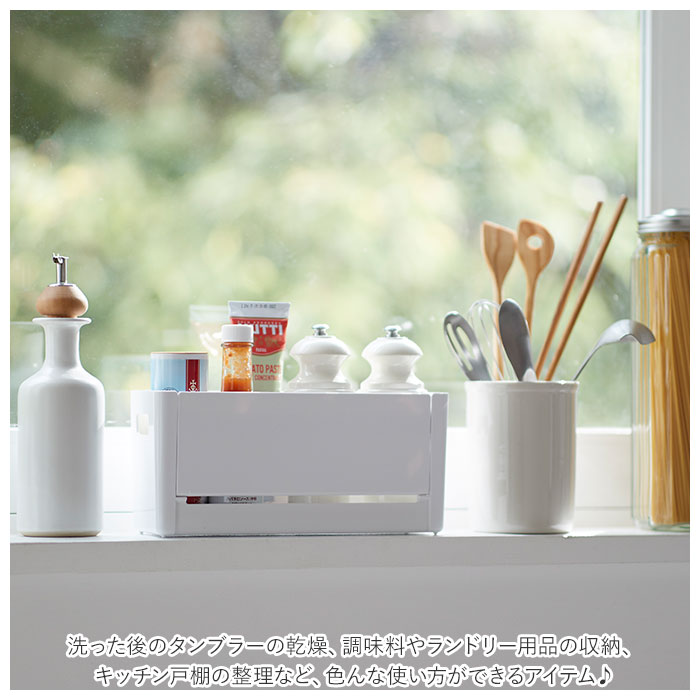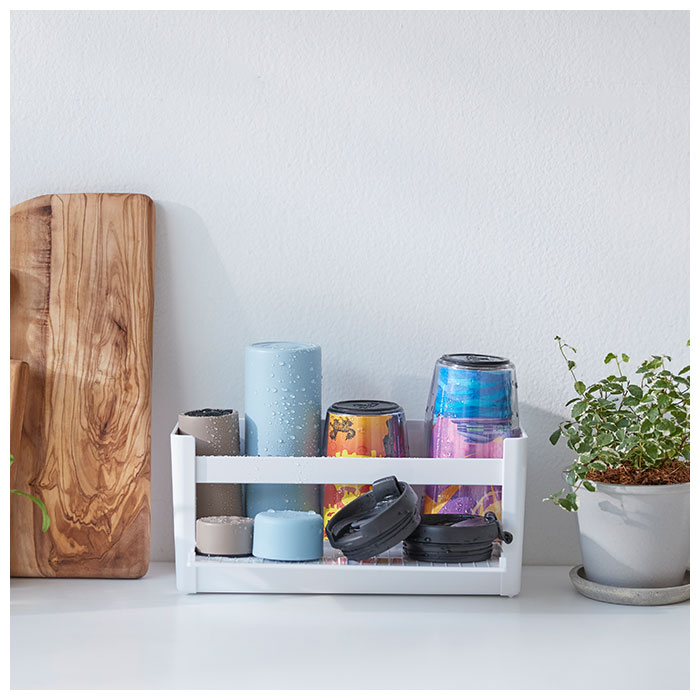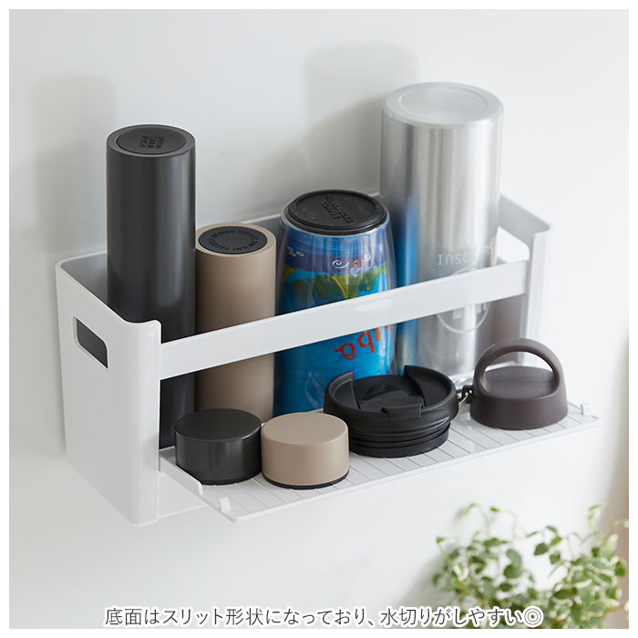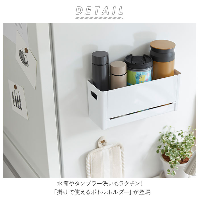 | ・水筒やタンブラー洗いもラクチン!「掛けて使えるボトルホルダー」が登場。 ・平らな面に直置きはもちろん、付属のマグネットシートを貼り付けて冷蔵庫などに取り付けもできちゃう! ・底面はスリット形状になっており、水切りがしやすい◎ ・両サイドに取っ手穴付きで、取り出しやすいのも嬉しいポイント。 ・タンブラーのフタやパッキンなどを置くのに便利な、開閉式トレイを装備! ・安心の日本製。洗った後のタンブラーの乾燥、調味料やランドリー用品の収納、キッチン戸棚の整理など、色んな使い方ができるアイテム♪ |