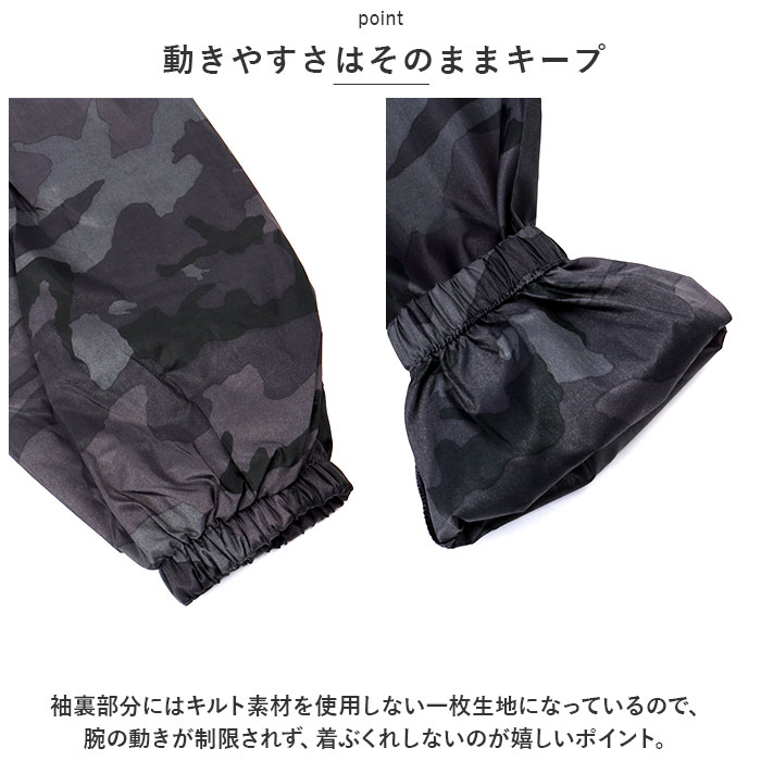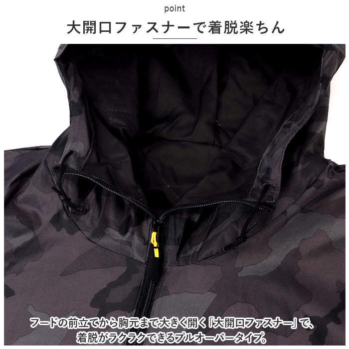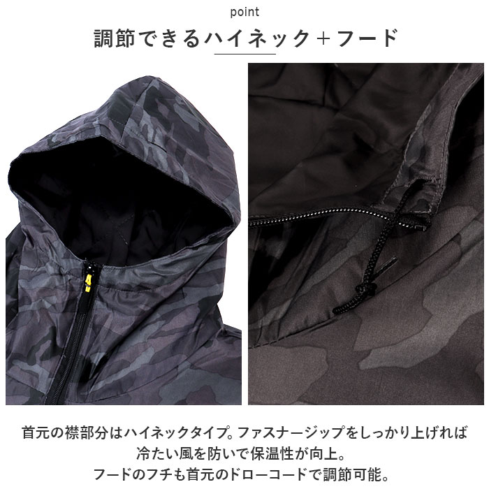 | ・中綿キルトでしっかり暖かい!冬をアクティブに楽しむ「暖キルト」ワークウェアシリーズから「プリント柄・セミキルトヤッケNX」が新登場。 【抜群の保温性×ソフトな着心地】 ・ボディの身頃部分とフード裏面に中綿キルト素材を使用した、軽くて暖かな防寒ヤッケ。通常のキルティング加工とは異なり、縫い目を造らず中綿がふき出さない「高周波圧着ダイヤキルト」を採用。 【ふんわり、ぽかぽかの暖かさ】 ・キルティング生地内側には、ポリエステル綿100%素材をふんわり充填。冷たい木枯らしが吹く日でも、ヤッケの中はぽかぽかの暖かさ。 【動きやすさはそのままキープ】 ・袖裏部分にはキルト素材を使用しない一枚生地になっているので、腕の動きが制限されず、着ぶくれしないのが嬉しいポイント。 【大開口ファスナーで着脱楽ちん】 ・フードの前立てから胸元まで大きく開く「大開口ファスナー」で、着脱がラクラクできるプルオーバータイプ。 【調節できるハイネック+フード】 ・首元の襟部分はハイネックタイプ。ファスナージップをしっかり上げれば冷たい風を防いで保温性が向上。フードのフチも首元のドローコードで調節可能。 【身体にピタッとフィット】 ・袖口ゴムと裾の調節コードで、ヤッケが身体にぴったりフィット!手元の動きが邪魔されず、隙き間風も防いでしっかり保温。 【便利なカンガルーポケット】 ・ヤッケの前面には、スマホやキーケースなど、普段使いの小物が左右から出し入れしやすいカンガルーポケット付き。 【カジュアルスタイルと相性抜群】 ・シンプルなシルエットと、ネイビー・オリーブ・ブラック、ワイルドなカモフラージュ柄でスタイリッシュに着こなせる!屋外での作業やウォーキング等のフィットネスまで幅広く大活躍。 |