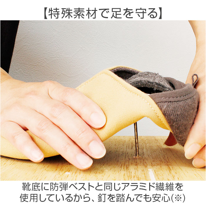 | [甲皮]綿 [底材]合成底 [ライニング]ポリエステル [インソール]ポリエステル、ポリウレタン、アラミド繊維 |