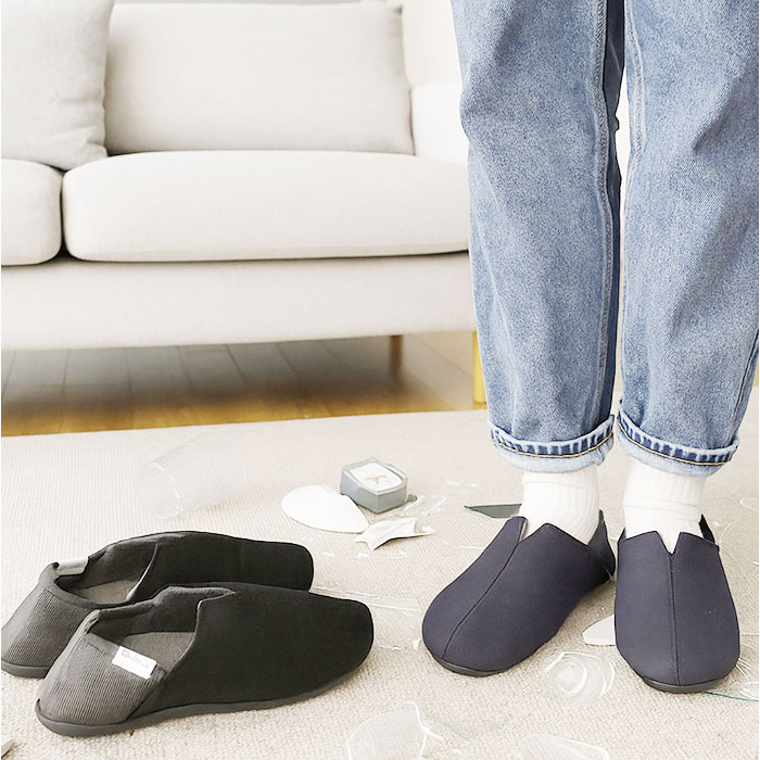 | 【防災士考案】 ・普段使いができる防災ルームシューズ。 【特殊素材で足を守る】 ・靴底に防弾ベストと同じアラミド繊維を使用しているから、釘を踏んでも安心※日本工業規格(JIS T 8107)による耐踏抜き性試験1100N(112.2kgf)をクリアしています。 【2WAYで使い分け】 ・かかとを踏んでスリッパに、非常時はかかとを戻してしっかり履けるから日常も防災時も〇 【停電時も見つかる】 ・蓄光タグ付きで暗闇でも光るから、停電や夜間の避難時に目印になる♪ 【清潔に保てる仕様】 ・手洗い可能でインソールも取り外せるから、いつでも清潔にキープできて衛生的! 【ユニセックス対応】 ・男女問わず履けるから、家族みんなで備えられる。 |