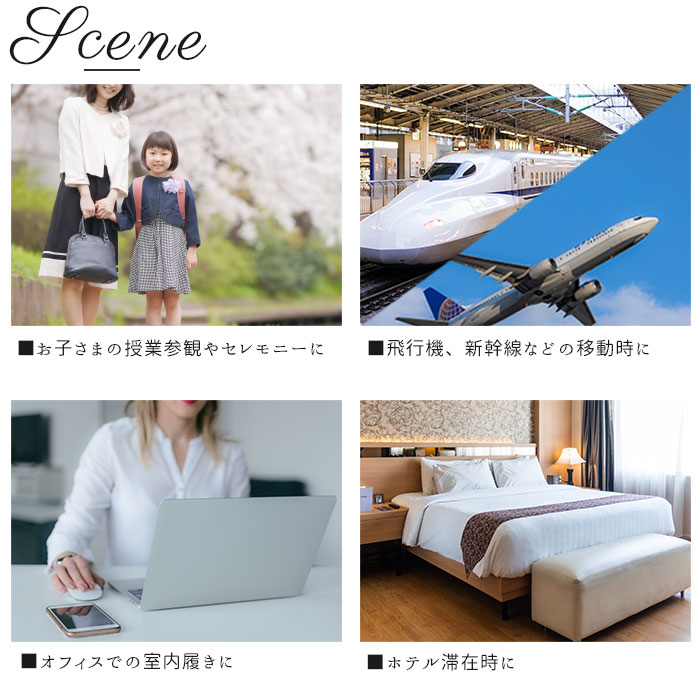 | ・いつでもどこでも使える携帯スリッパ。付属のポーチに折り畳んでコンパクトに収納できるので、常にカバンに忍ばせておきたいアイテム☆ ・22〜24cm対応なので、大人の女性はもちろん、子供でも気軽に使用できる☆ ・参観日・卒業式などの学校行事、飛行機・車など長時間移動の際にも最適♪ ・履き口はゴム仕様。かかとまでしっかり覆う安心のフィット感で、脱げにくい設計☆ ・おしゃれでかわいいデザインとカラーバリエーション☆お好みのシューズを探して、足元までオシャレを演出♪ ・靴底は合皮なので、床が少し濡れている場所でも靴下を濡らすことなく歩けるのが嬉しいアイテム! |