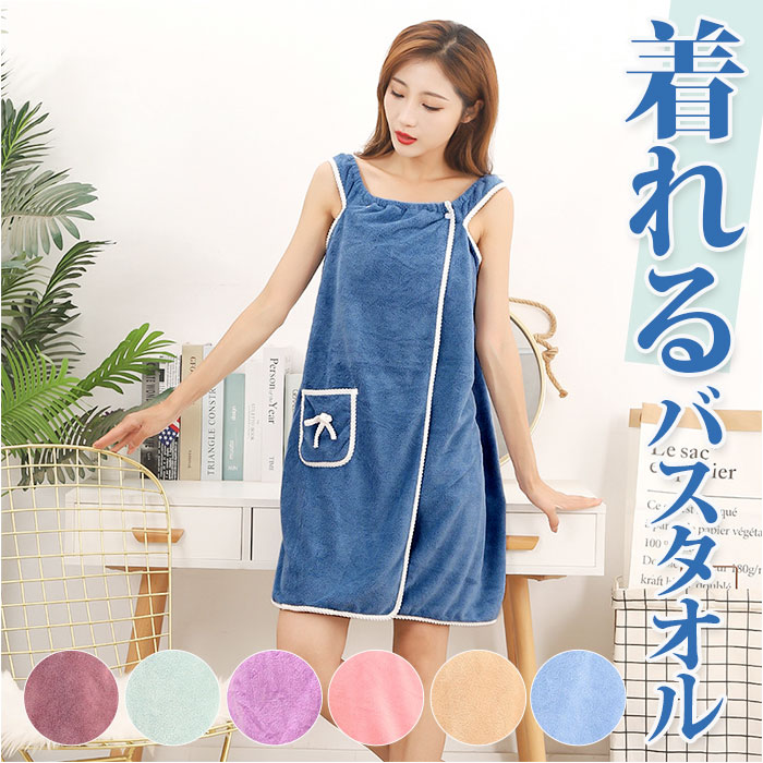 | ・忙しい女性にぴったり!サッと”着られる”バスタオルが登場。 【ワンピースのようなデザイン】 ・袖を通して、上部のボタンを2箇所留めるだけ◎ズリ落ちの心配も不要。 【手軽に使えて便利】 ・バタバタしがちなお風呂上がりに、サッと着られて便利!湯冷めや汗のべたつきを防ぎ、とっても快適◎ 【吸水速乾性のあるふんわり素材】 ・柔らかく肌に優しい素材を使用。水気や汗を素早く吸収し、乾きが早いのも嬉しいポイント。 【程よいボリューム感】 ・薄すぎず厚すぎない生地感で使い勝手抜群。 【小物ポケット付き】 ・保湿クリームなどを入れておけるポケットを配置。 【様々なシーンで】 ・プールなどのレジャー、旅行先でも活躍。 |