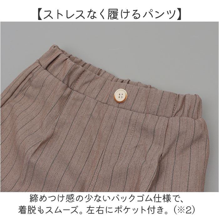 | 【大人顔負けのかっこいいスタイル☆】 ・コーデに悩まずおしゃれにキマる! 男の子用「フォーマルスーツ」が新登場。 【お好みで選べる2タイプ】 ・半袖シャツ&ショートパンツのAタイプ。長袖シャツ&アンクル丈パンツのBタイプをご用意。 【こなれ感がアップするベスト】 ・スタイリッシュな雰囲気を演出し、アクセントに。丸みのある襟デザインが印象的。 (※1)左右のポケットはフェイクです。 【ベーシックなホワイトシャツ】 ・フロントボタン付きの、スタンダードなカタチに仕立てたシャツ。単体使いもOK。 【ストレスなく履けるパンツ】 ・締めつけ感の少ないバックゴム仕様で、着脱もスムーズ。左右にポケット付き。 (※2)フロントボタンはフェイクです。 【ポイント使いもぬかりなく】 ・襟元にプラスする蝶ネクタイは、伸縮性のあるゴム&スライド式。華やかなコサージュも。 【特別な日にとっておきの1着を】 ・お子さまが着用しやすい、軽やかな生地感。発表会などのイベントやお呼ばれシーンに! |
