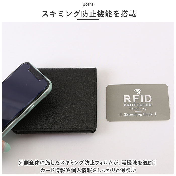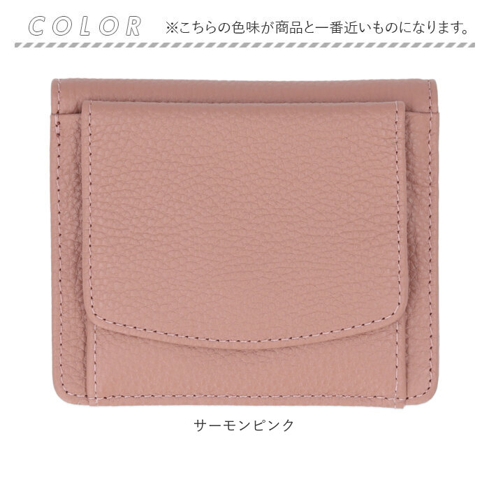 | ・現金やカードがすっきりまとまる♪LIZDAYSから、使い勝手の良い「二つ折りスリム本革財布」が新登場。 【軽量&収まりの良いサイズ感】 ・手に取りやすい軽さと、ミニバッグにも収納できるスリムでコンパクトなフォルム◎ 【大人な仕上がり】 ・シボ感のあるトップレザー(牛革)を採用。使うほどに味わいが増し、愛着が湧くアイテム。 【ボックス型の小銭入れ】 ・フロントに配置された小銭入れは、スナップボタン式のボックスタイプ。大きく開いて中身が見やすく、小銭がこぼれ落ちにくい!お会計もスムーズに♪ 【キャッシュレス派の方にぴったり】 ・スナップボタン式の開口部を開くと、お札入れ×1とカードポケット×6、フリーポケット×2を装備。カードを多く収納できるのがポイント! 【2つの隠れポケット】 ・小銭入れ後ろのポケットには、使用頻度の高いICカードなどをIN☆小銭入れ内のポケットに鍵を入れておくことで、紛失を防止。 【スキミング防止機能を搭載】 ・外側全体に施したスキミング防止フィルムが、電磁波を遮断!カード情報や個人情報をしっかりと保護◎ 【お気に入りをチョイス】 ・ベーシックカラーや差し色になるカラーをラインナップ!ギフトにもおすすめ。 |
