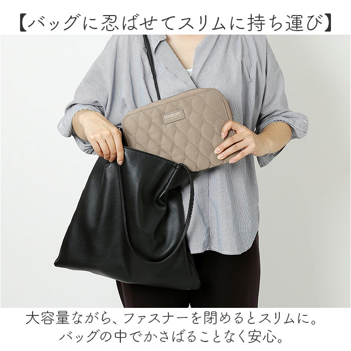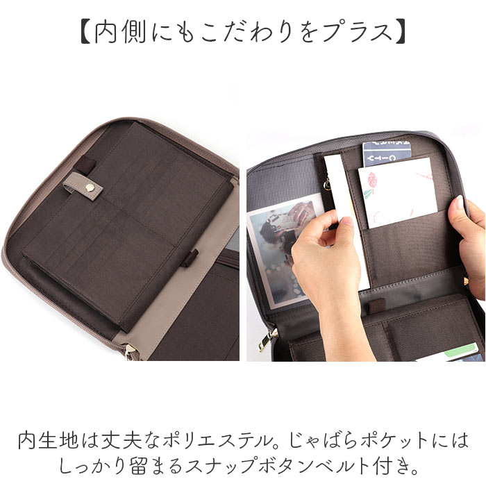 | 【ママのお出かけを優しくサポート】 ・現役ママ監修☆LIZDAYSから、しっかり収納できて機能的な「母子手帳ケース」が新登場。 【大切な物をすっきりひとまとめ】 ・最大A5サイズが収まり、全てのサイズの母子手帳に対応。ポケット付きで診察券なども一緒に。 【使い方色々。マルチに活躍】 ・キレイに仕分けOK!家計管理やパスポート、お薬手帳や通帳ケースとしても重宝。 【ぐるっと大きく180度オープン】 ・ダブルファスナー式で、中身をひと目で確認。ファスナーを閉じればこぼれ落ちをガード。 【使い勝手抜群!充実のポケット仕様】 ・マチ付きのじゃばらポケットや、多数のカードポケットなど!整理整頓がラクラク。 【バッグに忍ばせてスリムに持ち運び】 ・大容量ながら、ファスナーを閉めるとスリムに。バッグの中でかさばることなく安心。 【ちょっとの雨なら大丈夫】 ・表面に汚れや水滴を弾きやすい、撥水加工済み。お手入れも拭き取るだけ。 (※)完全防水ではありません。 【内側にもこだわりをプラス】 ・内生地は丈夫なポリエステル。じゃばらポケットにはしっかり留まるスナップボタンベルト付き。 【上品で落ち着きのあるデザイン】 ・表面には、光沢のある高密度ナイロン生地を採用。パパともシェアしやすいシンプルデザイン。 【ポケット仕様】 ・内側:A5オープンポケット×1、B6オープンポケット×3、ファスナー式メッシュポケット×1、ファスナーポケット×1、オープンポケット×3、カードポケット×20、ペンホルダー×1、印鑑ホルダー×1 ・背面:オープンポケット×1 |