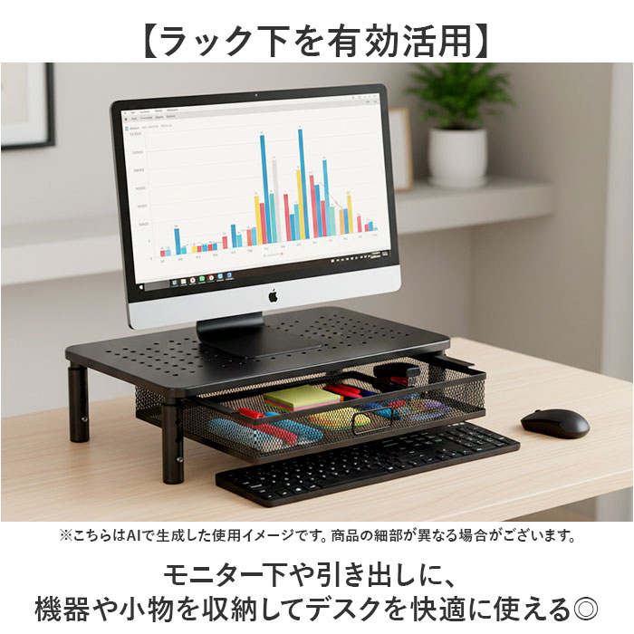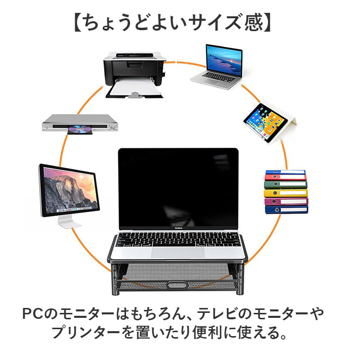 ・PCのモニターはもちろん、テレビのモニターやプリンターを置いたり便利に使える。