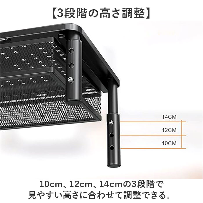 10cm、12cm、14cmの3段階で見やすい高さに合わせて調整できる。