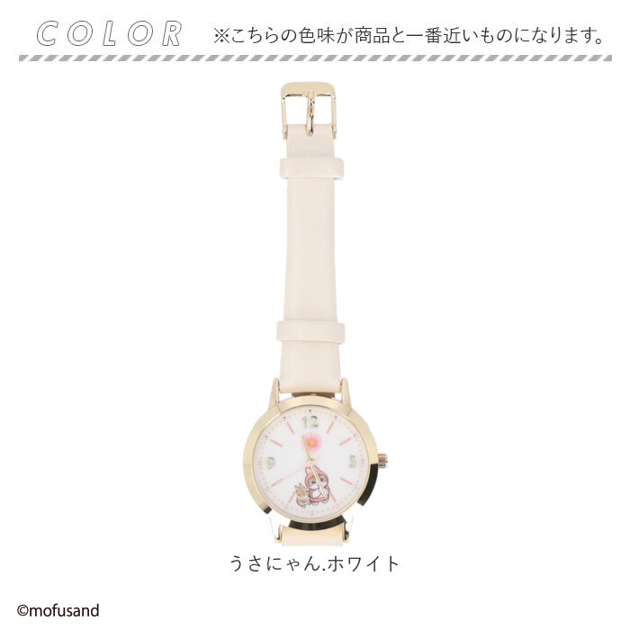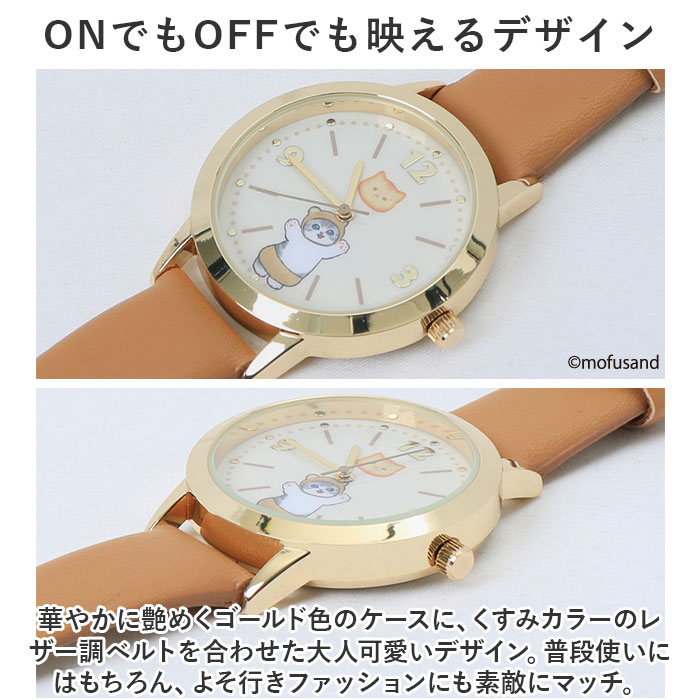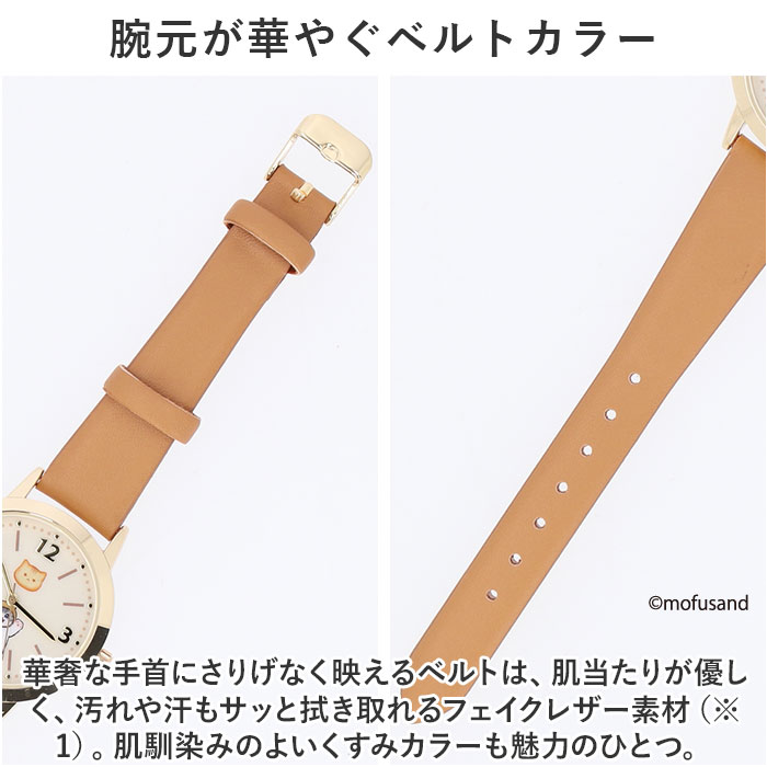 | ・にゃんこたちが文字盤から見え隠れ♪「mofusand 」のキュートな「レザーウォッチ」が新登場。 【mofusand オリジナルデザイン】 ・猫愛あふれるイラスト作家「ぢゅの」さんが優しいタッチで描きだす、もふもふワールド全開のオリジナルリストウォッチ。 【ONでもOFFでも映えるデザイン】 ・華やかに艶めくゴールド色のケースに、くすみカラーのレザー調ベルトを合わせた大人可愛いデザイン。普段使いにはもちろん、よそ行きファッションにも素敵にマッチ。 【手元にほっこり癒しのアクセント】 ・キラリと金色に光るインデックス数字と一緒に、mofusandたちを小さくプリントしたユニークな文字盤がチャームポイント。時計を見るたび、ほっこり癒される♪ 【腕元が華やぐベルトカラー】 ・華奢な手首にさりげなく映えるベルトは、肌当たりが優しく、汚れや汗もサッと拭き取れるフェイクレザー素材(※1)。肌馴染みのよいくすみカラーも魅力のひとつ。 【プチギフトにも最適】 ・シンプルなデザインと甘すぎないカラーで、学生さんからミセスまで、幅広い年代の女性のオススメ。カラビナ付きのクリアポーチ入りなので、プチギフトにも最適。 【アクセサリ感覚でハンギング】 ・クリアポーチに付属したカラビナで、バッグのハンドルやパンツのベルトループに引っ掛ければ、ファッションの素敵なアクセントに。 【mofusandとは・・・】 ・モフかわな世界観で話題沸騰、SNSで人気のイラスト作家「ぢゅの」さんデザイン。サメの着ぐるみを着たり、イチゴを抱いてうずくまった猫ちゃんのイラストが愛くるしくてちょっぴりシュール。 |