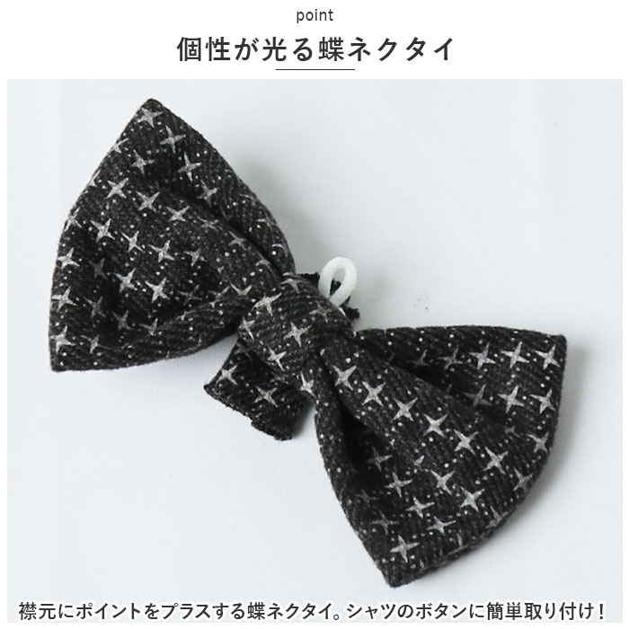 ・襟元にポイントをプラスする蝶ネクタイ。シャツのボタンに簡単取り付け!