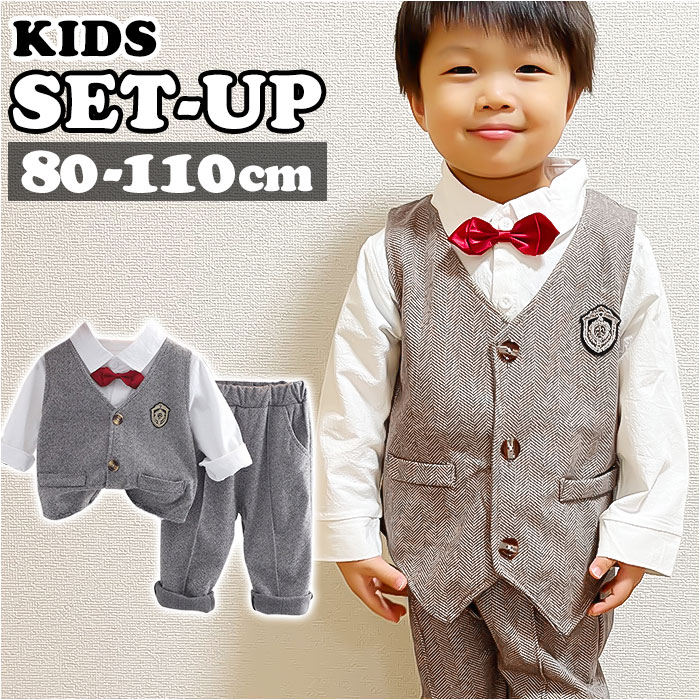 | ・コーデに悩むことなく、おしゃれにキマる!キッズ用(男の子)フォーマルスーツが新登場。 【うれしい4点セット】 ・長袖シャツ、ベスト、ロングパンツ、蝶ネクタイの4点セット。大人顔負けのスタイリングが完成☆ 【ベーシックな長袖シャツ】 ・フロントボタン付きの、スタンダードなカタチに仕立てたシャツ。単体使いもしやすいホワイトカラー。 【こなれ感がアップするベスト】 ・よりスタイリッシュな雰囲気を演出。左胸元にワッペン付き。(※ポケットはフェイクです。) 【ストレスなく履けるロングパンツ】 ・締めつけ感の少ないウエストゴム仕様。着替えがしやすく、自分サイズにフィット!左右にポケット付き。 【個性が光る蝶ネクタイ】 ・襟元にポイントをプラスする蝶ネクタイ。シャツのボタンに簡単取り付け! 【色々なシーンで活躍】 ・カジュアルライクなデザインで、デイリー使いからフォーマルシーンまで!幅広く活躍☆袖や裾をロールアップしてもおしゃれ。 |