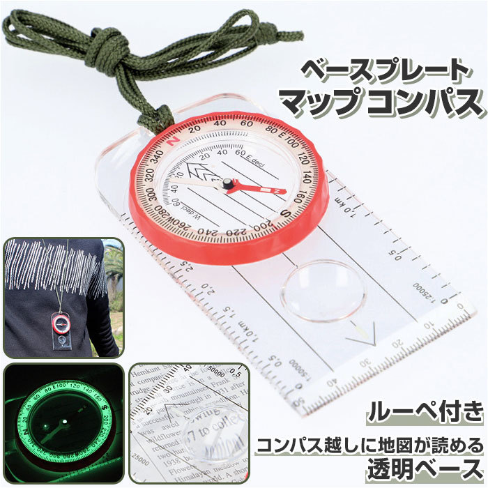 ・ハイキングやオリエンテーリングのナビゲーションに大活躍!携帯に便利な「ベースプレート・マップコンパス」 ・地図の上に重ねて置いて、コンパス越しに地図がそのまま読める透明ベースプレートタイプ。 ・方位磁針が収まっているカプセル部分にはオイルを充填。オイルの抵抗により磁針のブレが少なく、方向指示が安定。 ・プレートトップはセンチ式定規、向かって左側に1:50000、右側には1:25000縮尺スケールを装備し、登山や散策時の目的地をしっかりナビゲーション。 ・透明プレート中央には便利なルーペ付き。地図の細かい文字が読みやすく、老眼鏡を取り出す手間がないのが嬉しいポイント! ・コンパス円周部の目盛板は光を吸収する蓄光タイプなので、アウトドアで夕闇に包まれても方角が読み取りやすい仕様。 ・首から掛けて携帯に便利なネックストラップが付属。重量わずか36gの軽量コンパクト設計で、アウトドアでもパフォーマンス抜群。 |