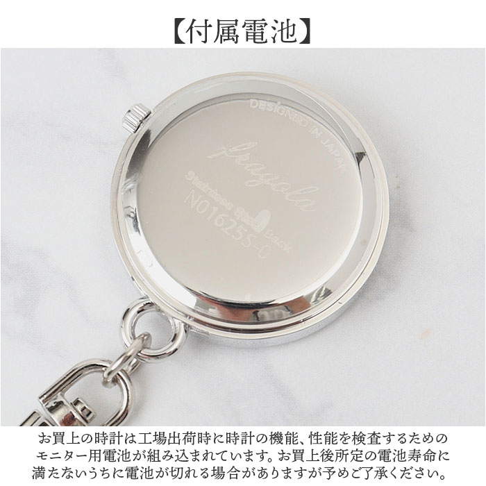 | 【大人可愛いチャームウォッチ】 ・バッグに付けて持ち運び簡単♪シンプルチャームウォッチ。 【逆さ文字盤で見やすい】 ・文字盤が逆さ表示だからバッグに付けたまま簡単に時間を確認できる◎ 【見やすい文字盤】 ・シンプルなデザインでパッと時間を確認しやすい! 【着脱簡単キーチェーン】 ・ナスカンで取り外しが簡単にできるから、バッグやベルトに付けていつでも時間を確認できる。 【コンパクトサイズ】 ・コンパクトなサイズ感で、バッグに付けても邪魔にならずスマートに持ち歩ける! 【付属電池】 ・お買上の時計は工場出荷時に時計の機能、性能を検査するためのモニター用電池が組み込まれています。お買上後所定の電池寿命に満たないうちに電池が切れる場合がありますが予めご了承ください。 |
