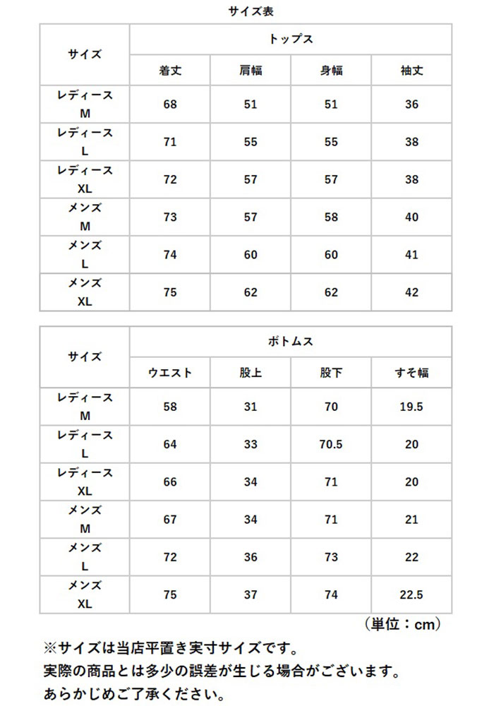 | [レディース] ・Mサイズ ・Lサイズ ・XLサイズ [メンズ] ・Mサイズ ・Lサイズ ・XLサイズ ※サイズについて詳細は、商品画像の中にあるサイズ表をご覧くださいませ。 |