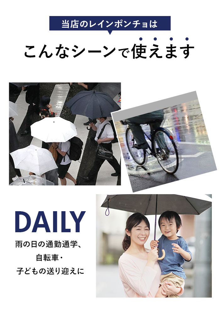 | 注意点 | ※レインパーカー単品での販売となります。レインパンツは付属しませんのでご注意ください。 ※実際の商品とは、多少、色・仕様が異なる場合がございます。 ※この商品は、はっ水機能商品です。水は、はじきますが防水加工はしておりませんので生地や縫い目等から水が浸入しやすく、長時間のご使用や高水圧に対しては水を通してしまいます。 ※はっ水加工は永久的なものでは無く、着用を繰り返すことにより効果は低下しますので、はっ水が弱くなりましたら、クリーニング店にはっ水加工を依頼してください。防水スプレーを利用していただいても結構です。 ※カメラやモニターの性質により、画像と実物の色の違いがある場合がございますのでご理解願います。 |