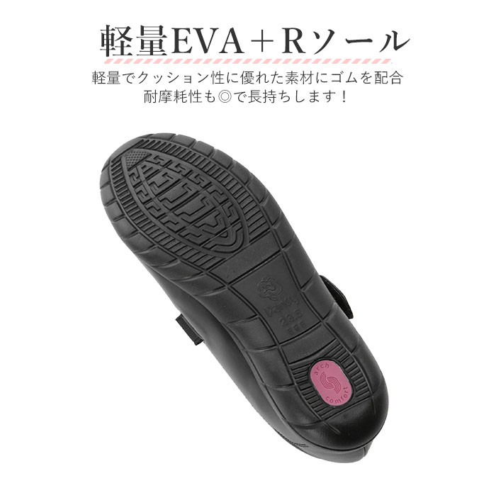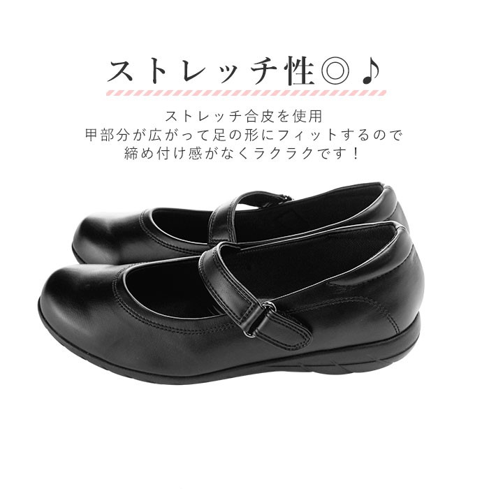 | 抗菌・防臭加工で長時間安心♪甲ストラップで脱ぎ履きラクラク、オフィスシューズ♪ソフトなストレッチ合皮を甲表素材に使用し、甲両側面の一番幅広の部分が伸びる独自のストレッチ設計! 土踏まず部分にはフィットするU字型アーチクッションで足への負担も軽減してくれます。 |