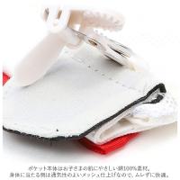 | ・たれ目のパンダさんが可愛い♪ポケットのない服やバッグに取り付けられる「パンダクリップポケット」! ・女の子のスカートのようなポケットのないお洋服にも手軽にポケットをプラス!ハンカチやティッシュの持ち運びにぴったり。 ・パンダさんのお顔が描かれたフラップは、面ファスナーでサッと開閉。フラップ裏側がポケットティッシュ専用ポケットになったユニークなつくり。 ・メインポケットにはハンカチの他、いつも携帯しておきたいマスクやばんそうこう、リップクリームなど小物の収納に便利。 ・背面の2つのクリップで挟むだけで、スカートやズボンのウエストに簡単に取り付けが可能。レッスンバッグの開口部にちょこんとくっつけてもOK! ・ポケット本体はお子さまの肌にやさしい綿100%素材。身体に当たる側は通気性のよいメッシュ仕上げなので、ムレずに快適。 ・ちょこんと丸いお耳の男の子パンダに、赤リボンが可愛い女の子パンダ。ツンデレ・はにかみスマイルがクセになるパンダクリップで、人気者になっちゃおう♪ |