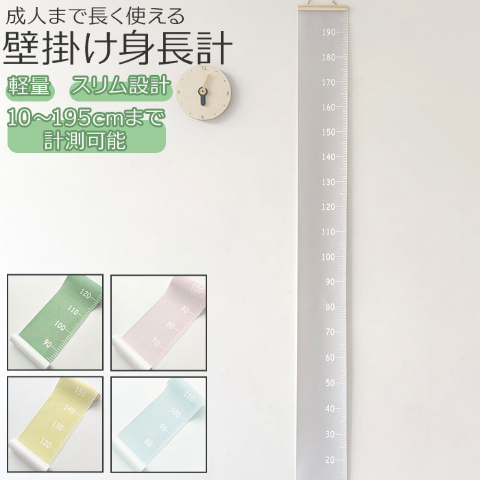 | ・壁掛けタイプの身長計が発売。 10cmから最大195cmまで計測可能!成人まで長く使えるのが嬉しいポイント♪ ・横幅約20cmとスリムな設計で、壁はもちろんドアや柱などのスペースにも設置可能。 ・温かみのあるナチュラルな木材と、優しい風合いのキャンバス生地を使用。 ・メモリ部分は見やすくインテリアにも馴染みやすいおしゃれなデザイン。 ・約160gの軽量なつくりで、市販の両面テープタイプのフックなどに取り付けも可能。(※当店計測の重量です。)釘や画鋲など穴を開けられる箇所はもちろん、穴を開けられない環境でも使用OK◎ ・壁を傷つけずに直接身長やお名前を書くことができ、お子様の成長記録はもちろん、大人の日頃の健康観察としてもおススメのアイテム。 |