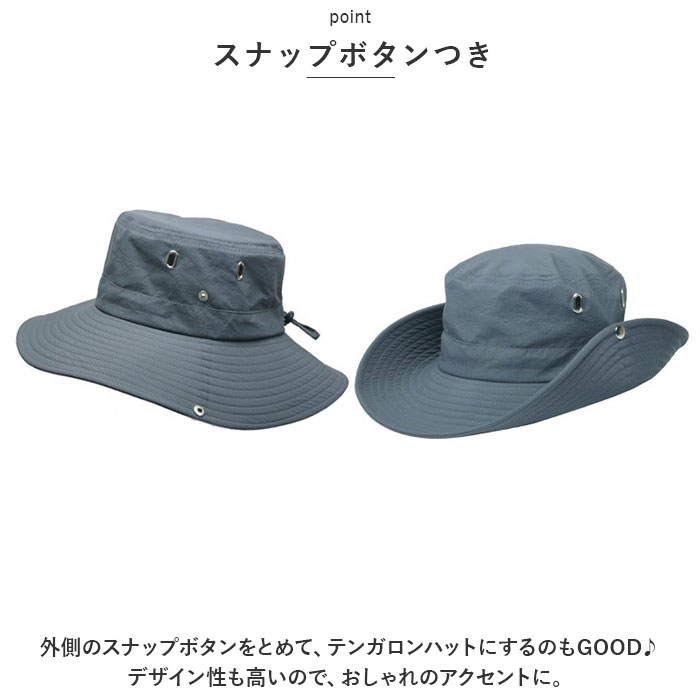 | ・通気性バツグン!大きめのツバでしっかり日よけ対策。アウトドアに!「サファリハット」が登場。 【日よけ対策】 ・大きめのツバが360度あるので、日よけ対策にぴったり!夏のお出かけにひとつあると重宝するアイテム。 【通気性◎】 ・裏地はメッシュ仕様のなっているので、通気性はバツグン!シルバーパーツの穴でさらに通気性UP、ムレを軽減◎ 【あご紐つき】 ・安心のあご紐つき。風の強い日でも、帽子が飛ばされる心配いらず!アジャスターであごにぴったりフィット。 【スナップボタンつき】 ・外側のスナップボタンをとめて、テンガロンハットにするのもGOOD♪デザイン性も高いので、おしゃれのアクセントに。 【ナイロン】 ・ナイロンを使用した軽い生地。汗をかいても乾きやすく、シワになりにくいので折りたたみOK。持ち運びにも便利。 【サイズ調節OK】 ・外側にサイズ調節可能なアジャスター付きの紐を搭載。あご紐だけでなく、頭周りの大きさに合わせてフィットさせることができる。 【シンプルデザイン】 ・無駄な装飾のない、シンプルなデザインが魅力。性別年齢を問わず使用でき、飽きずに長く愛用できるアイテム。 【選べるカラー】 ・選べるカラーが豊富。ユニセックスで使えるので、カップルや家族でお揃いにするのもGOOD。 |