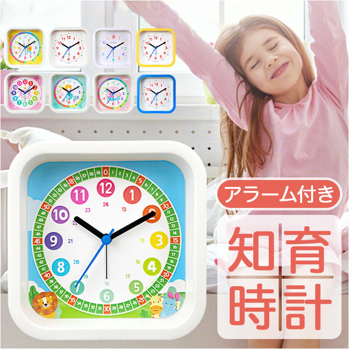 | ・見やすい文字盤で、時計の読み方を楽しくお勉強!アラーム機能付き「子ども 知育・目覚まし時計」が新登場。 【時間が見やすいカラフル仕様】 ・カラフルなレインボーカラーにデザインされた文字盤で、時間の感覚を直観的に学習できる知育時計。(※「タイプ004」のみ、一部文字盤が3色に色分けされたデザインです。) 【時間学習をサポート】 ・文字盤外側の目盛り部分には、小さな文字で「分数・60秒スケール」配置。さらに、12時間スケールの内側もしくは外側に「24時間スケール」を表示することで、小さなお子様から小学校高学年まで、お子さまの成長に合わせた時間学習をサポート!(※「タイプ004」のみ、24時間スケール表示のないデザインです。) 【時計の針も見やすく色分け】 ・長針・短針は黒色、秒針は青色に。お子さまがパッとスムーズに時間が読み取れるシンプルなカラーリング。 【おやすみ時間を妨げない連続秒針】 ・静かな場所や夜中でも時計のコチコチ音が気にならない「連続秒針」を採用。秒針の音が気になって眠れなくなってしまうお子さまでも安心。 【アラームですっきりウェイクアップ】 ・ピピピピッ、ピピピピッと可愛く鳴り響くアラームで、早起きの苦手なお寝坊さんでも毎朝の目覚めがスッキリ爽快。 【こども部屋に最適のデザイン】 ・角に丸みのあるスクエア型と清潔感のあるホワイトカラーの組み合わせが子ども部屋のインテリアに優しくフィット。楽しい絵柄のあるデザインは低学年のお子さまに、シンプルなデザインは高学年のお兄さん、お姉さんに最適! 【電池仕様】 ・単3形電池1本使用。(電池は別売りです。) |