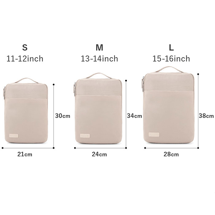 | ・S(11-12インチ) [縦]約30cm/[横]約21cm/[マチ]約3cm [持ち手]約13cm ・M(13-14インチ) [縦]約34cm/[横]約24cm/[マチ]約3cm [持ち手]約15cm ・L(15-16インチ) [縦]約38cm/[横]約28cm/[マチ]約3cm [持ち手]約18cm ※サイズは当店計測の実寸サイズです。実際の商品ならびにメーカー表記サイズとは多少の誤差が生じる場合がございます。あらかじめご了承ください。 |