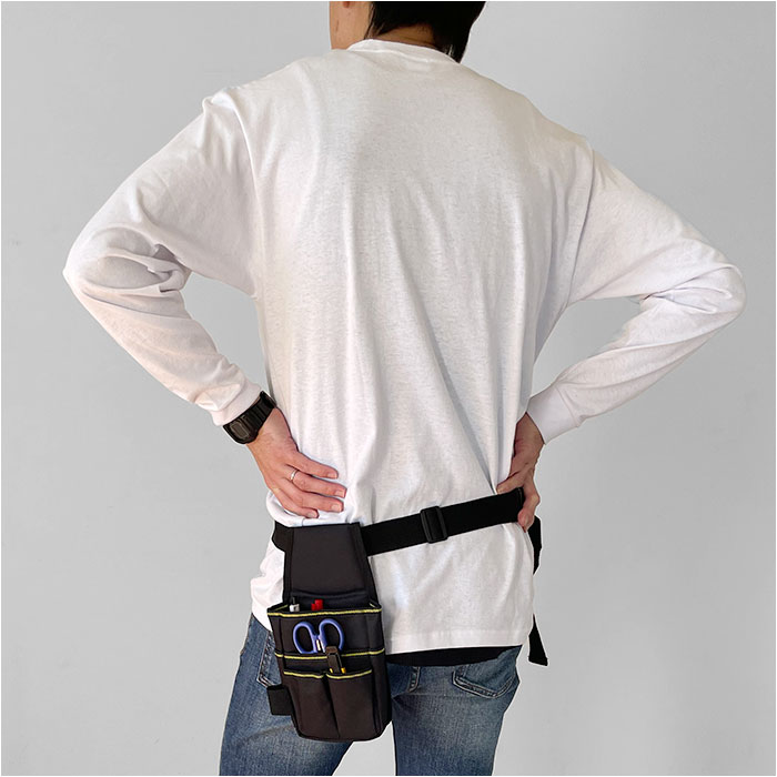 ・日曜大工やプチリフォームなどのDIY作業をはじめ、様々な軽作業用の工具の持ち歩きに便利な、マルチに使えるウエストバッグタイプの工具入れ。
