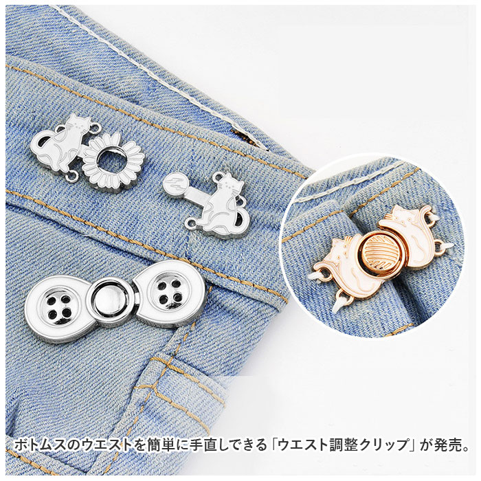 | ・ボトムスのウエストを簡単に手直しできる「ウエスト調整クリップ」が発売。 【取り付け簡単】 ・調節したい箇所にフックを縫い付けてひっかけるだけ!縫い付けタイプなのでお子様のお洋服にも安全に取り付けられる◎ 【デニムもOK】 ・金属製のクリップだからデニムなど厚めの生地でもしっかり留められるのもポイント♪ 【シンプルデザイン】 ・縫い直せば繰り返し使え、様々なボトムスに合わせやすいシンプルデザイン。 【コーデのアクセントに】 ・スーツジャケットの胸元やストール留めに付ければ普段の装いに華やかさをプラス。 |