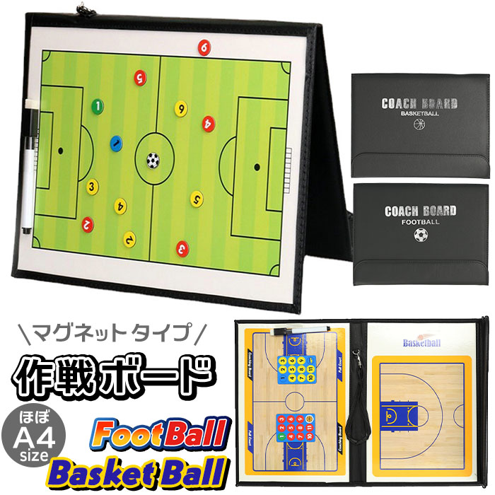 | ・スポーツの練習や試合に欠かせない、作戦ボード! ・チームプレイや対戦試合をシミュレーションする、マグネットタイプの作戦盤。 ・ボード上を使って説明することで伝わりやすくなり、理解も深まる!振り返り時に課題と対策が見えやすいのもポイント。 ・開口部もマグネット仕様で開閉がラクラク。 ・コート全体と、ゴールに近いコート半分のボードに分かれた2面仕様。 ・自分のチームと相手のチームのメンバー、ボールの動きを表現できる、1〜11までのマグネット&ボールの絵柄が書かれたマグネット×各2付き。 ・イレイサー付きのペンで、文字の書き込みと消すことが可能。 ・A4とほぼ同じサイズに収まる折りたたみ式で、持ち運びに最適。 ・取り外し可能な持ち手ストラップ付き。 ・ポジショニングについて勉強したり、戦術の予習・復習をする際にも活躍。 |