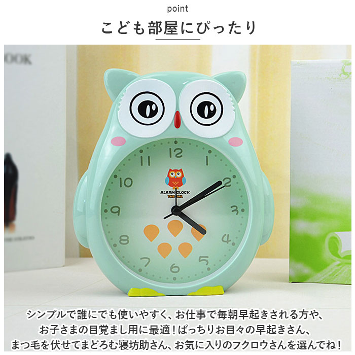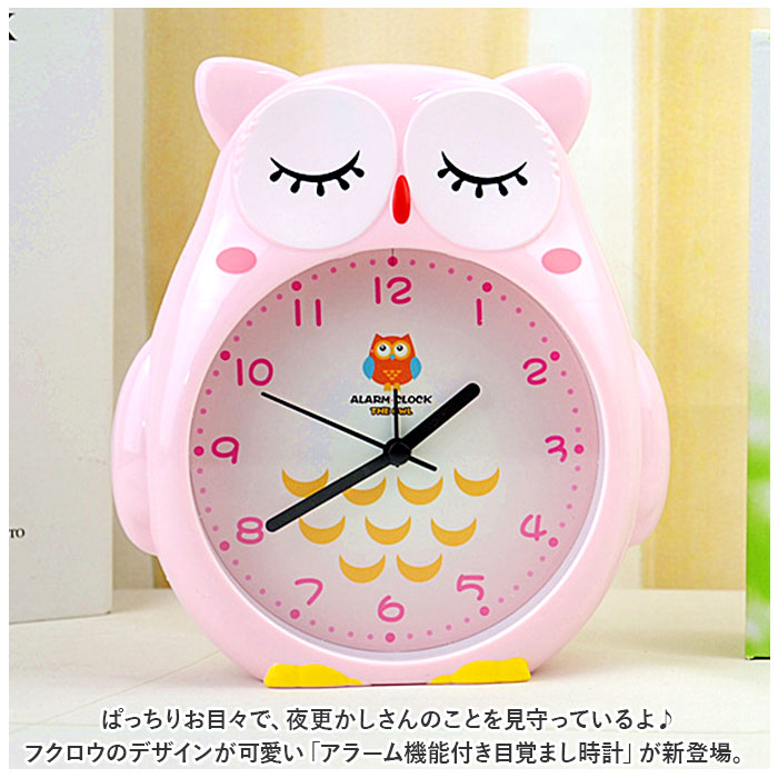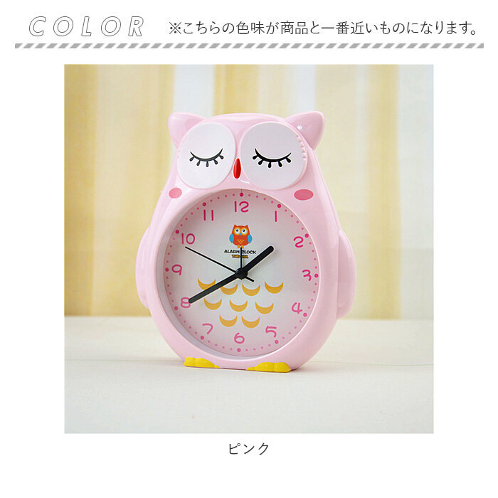 | ・ぱっちりお目々で、夜更かしさんのことを見守っているよ♪フクロウのデザインが可愛い「アラーム機能付き目覚まし時計」が新登場。 【幸福を呼ぶフクロウモチーフ】 ・幸福を呼ぶ縁起のよい吉鳥として知られているフクロウがモチーフ!ずんぐりむっくりのお腹が文字盤になったキュートなアラームクロック。 【パッと見やすいアナログ文字盤】 ・パステルカラー文字盤にブラックの時計の針が浮き立つ、お年を召した方やお子さままで、誰でも時間が読みやすいシンプルデザイン。 【アラームですっきりウェイクアップ】 ・「ピピピピッ、ピピピピッ」と可愛く鳴り響くアラームで、早起きの苦手なお寝坊さんでも毎朝の目覚めがスッキリ爽快。 【こども部屋にぴったり】 ・シンプルで誰にでも使いやすく、お仕事で毎朝早起きされる方や、お子さまの目覚まし用に最適!ぱっちりお目々の早起きさん、まつ毛を伏せてまどろむ寝坊助さん、お気に入りのフクロウさんを選んでね!(※単3形乾電池1本使用。電池は別売りです。) |