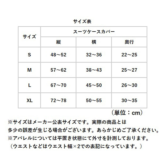 | 【グーンと伸びて簡単装着◎】 ・おしゃれに傷&防犯対策!「スーツケースカバー」が登場。 【おしゃれに保護する嬉しいアイテム】 ・耐摩耗性に優れた生地が、スーツケースを傷からカード!出張や海外旅行のマストアイテム。 【空港などでパッと見つけやすい!】 ・自分のスーツケースを見つけやすくなるのもポイント!空港レーンでの荷物のピックも一目瞭然◎ 【被せるだけの簡単装着でラクチン】 ・水着のようにグーンと伸びるので、装着しやすい!お持ちのスーツケースにピタッとフィット。 【安心のダブルロック仕様】 ・ファスナーとベルトのダブルロック仕様。カチッと留めるだけで安定し、カバーがズレにくい。 【選べる☆ポップで可愛いデザイン】 ・お出かけを楽しい気分にさせてくれるポップなデザインがたくさん。サイズも豊富◎ |