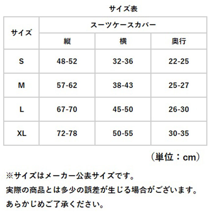 | 【グーンの伸びて簡単装着◎】 ・お気に入りのデザインをチョイス☆「スーツケースカバー」が登場。 【おしゃれに守る、万能カバー】 ・耐摩耗性に優れた生地が、スーツケースを傷から保護してくれる!海外旅行も安心◎ 【空港などでパッと見つけやすい!】 ・自分のスーツケースを見つけやすくなるのもポイント!空港レーンでの荷物のピックも一目瞭然◎ 【被せるだけの簡単装着でラクチン】 ・水着のようにグーンと伸びるので、装着しやすい!お持ちのスーツケースにピタッとフィット。 【安心のダブルロック仕様】 ・ファスナーとベルトのダブルロック仕様。カチッと留めるだけで安定し、カバーがズレにくい。 【選べる☆ポップで可愛いデザイン】 ・お出かけを楽しい気分にさせてくれるポップなデザインがたくさん。サイズも豊富◎ |