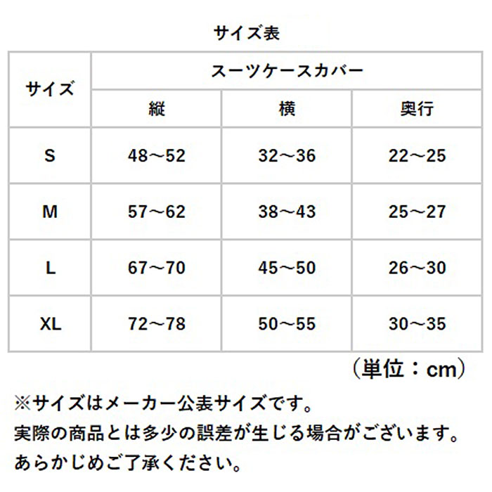 | 【グーンと伸びて簡単装着◎】 ・お気に入りのデザインで旅行をもっと楽しく☆「スーツケースカバー」が登場。 【おしゃれに保護する嬉しいアイテム】 ・耐摩耗性に優れた生地が、スーツケースを傷からカード!出張や海外旅行のマストアイテム。 【空港などでパッと見つけやすい!】 ・自分のスーツケースを見つけやすくなるのもポイント!空港レーンでの荷物のピックも一目瞭然◎ 【被せるだけの簡単装着でラクチン】 ・水着のようにグーンと伸びるので、装着しやすい!お持ちのスーツケースにピタッとフィット。 【安心のダブルロック仕様】 ・ファスナーとベルトのダブルロック仕様。カチッと留めるだけで安定し、カバーがズレにくい。 【選べる☆ポップで可愛いデザイン】 ・お出かけを楽しい気分にさせてくれるポップなデザインがたくさん。サイズも豊富◎ |