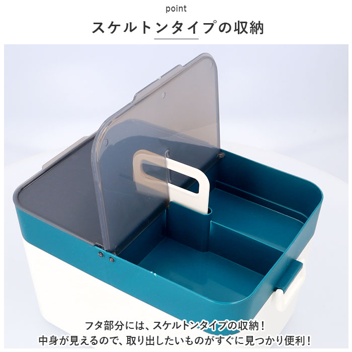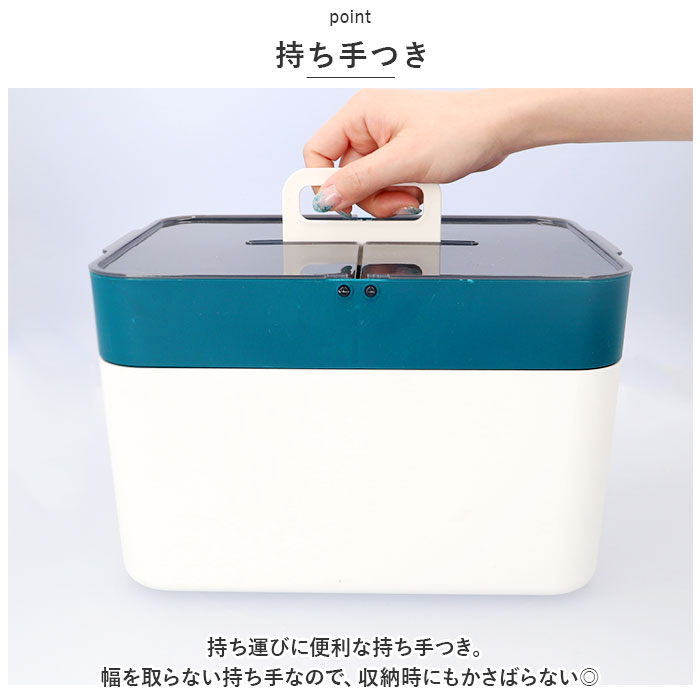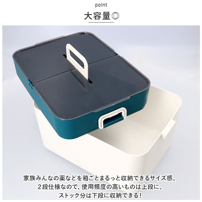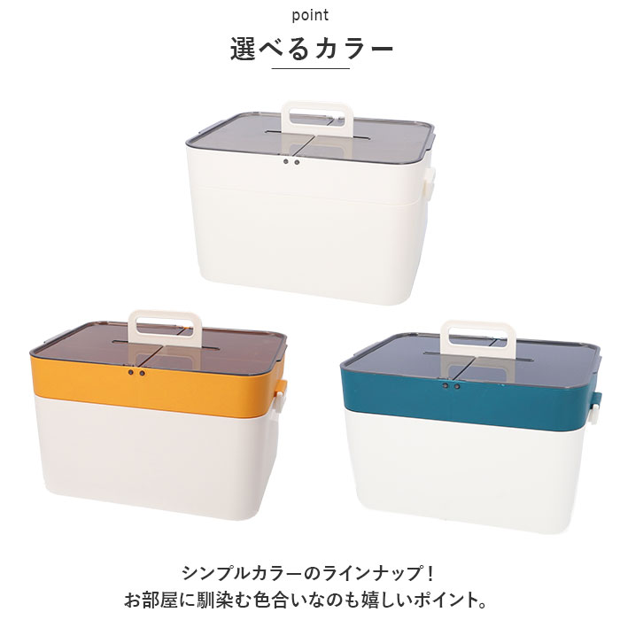 | ・スケルトンタイプで使いやすい!大容量で安心の「救急箱」が登場! 【スケルトンタイプの収納】 ・フタ部分には、スケルトンタイプの収納!中身が見えるので、取り出したいものがすぐに見つかり便利! 【大容量◎】 ・家族みんなの薬などを箱ごとまるっと収納できるサイズ感。2段仕様なので、使用頻度の高いものは上段に、ストック分は下段に収納できる! 【持ち手つき】 ・持ち運びに便利な持ち手つき。幅を取らない持ち手なので、収納時にもかさばらない◎ 【ロックつきのフタ】 ・メイン収納のフタはロックつき!しっかりホールドできるので中身が飛び出さずに安心。 【選べるカラー】 ・シンプルカラーのラインナップ!お部屋に馴染む色合いなのも嬉しいポイント。 |