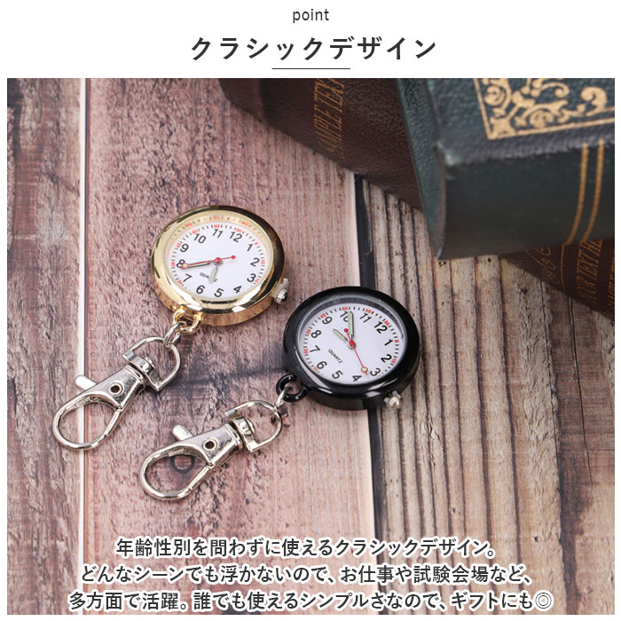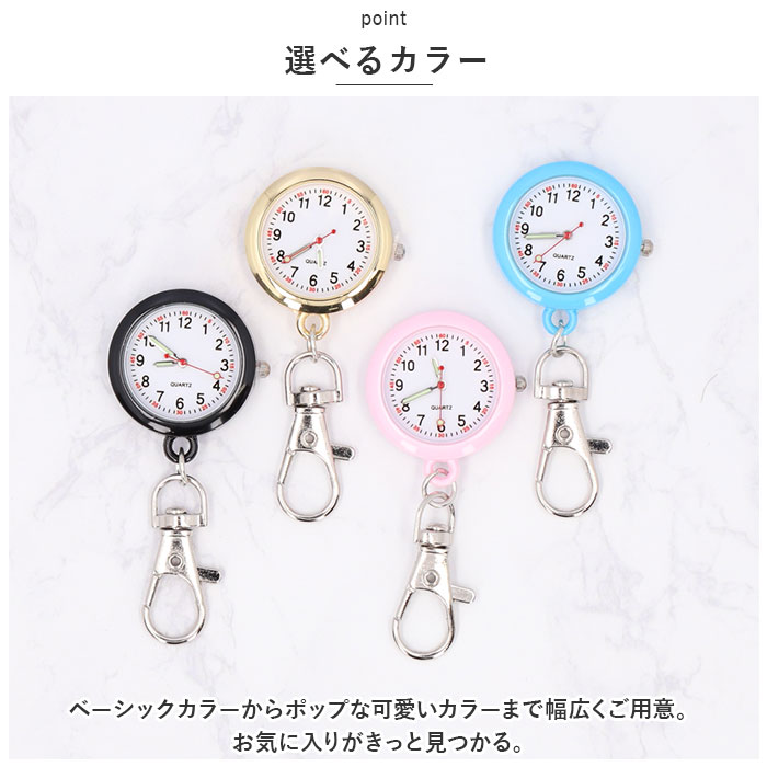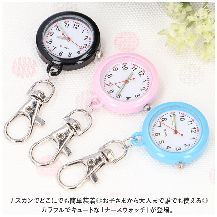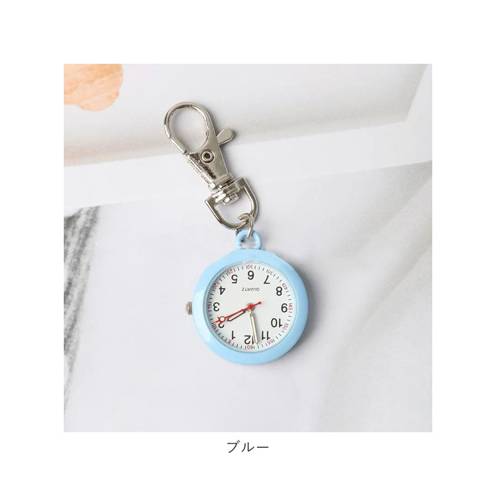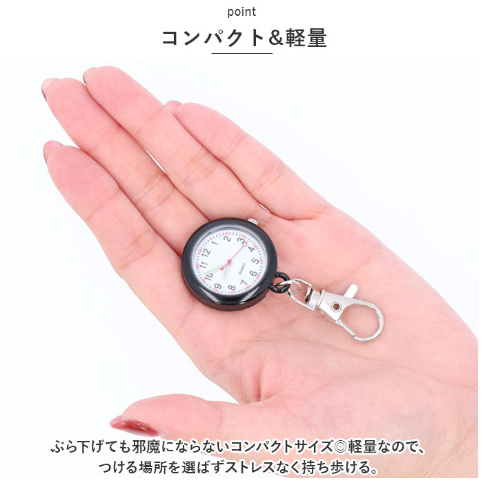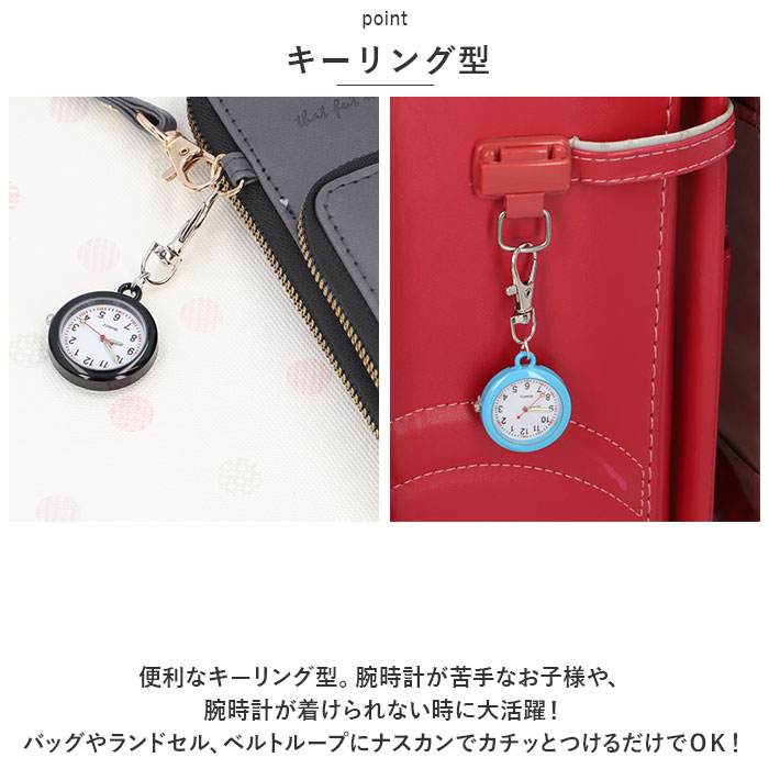 | ・ナスカンでどこにでも簡単装着◎お子さまから大人まで誰でも使える◎カラフルでキュートな「ナースウォッチ」が登場。 【キーリング型】 ・便利なキーリング型。腕時計が苦手なお子様や、腕時計が着けられない時に大活躍!バッグやランドセル、ベルトループにナスカンでカチッとつけるだけでOK! 【シンプルで見やすい文字盤】 ・余計な装飾がなく、シンプルで見やすい文字盤。時計を持ち上げた際に正しい位置で時間が確認できる様、文字盤を逆さに設計。 【暗い場所でも◎】 ・秒針は日中の光を吸収して蓄積する塗料を使用。蓄光タイプで、暗い中でも針の位置を把握しやすいのも嬉しいポイント。 【コンパクト&軽量】 ・ぶら下げても邪魔にならないコンパクトサイズ◎軽量なので、つける場所を選ばずストレスなく持ち歩ける。 【クラシックデザイン】 ・年齢性別を問わずに使えるクラシックデザイン。どんなシーンでも浮かないので、お仕事や試験会場など、多方面で活躍。誰でも使えるシンプルさなので、ギフトにも◎ 【選べるカラー】 ・ベーシックカラーからポップな可愛いカラーまで幅広くご用意。お気に入りがきっと見つかる。 |