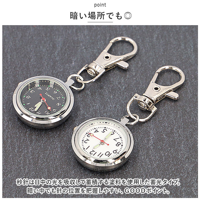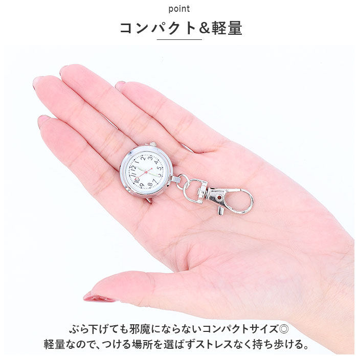 | ・キーリング型で便利!ナスカンでどこにでも簡単装着◎お子さまから大人まで誰でも使える◎「ナースウォッチ」が登場。 【キーリング型】 ・便利なキーリング型。腕時計が苦手なお子様や、腕時計が着けられない時に大活躍!バッグやランドセル、ベルトループにナスカンでカチッとつけるだけでOK! 【シンプルで見やすい文字盤】 ・余計な装飾がなく、シンプルで見やすい文字盤。時計を持ち上げた際に正しい位置で時間が確認できる様、文字盤を逆さに設計。 【暗い場所でも◎】 ・秒針は日中の光を吸収して蓄積する塗料を使用した蓄光タイプ。暗い中でも針の位置を把握しやすい、GOODポイント。 【コンパクト&軽量】 ・ぶら下げても邪魔にならないコンパクトサイズ◎軽量なので、つける場所を選ばずストレスなく持ち歩ける。 【クラシックデザイン】 ・年齢性別を問わずに使えるクラシックデザイン。どんなシーンでも浮かないので、お仕事や試験会場など、多方面で活躍するアイテム。 |