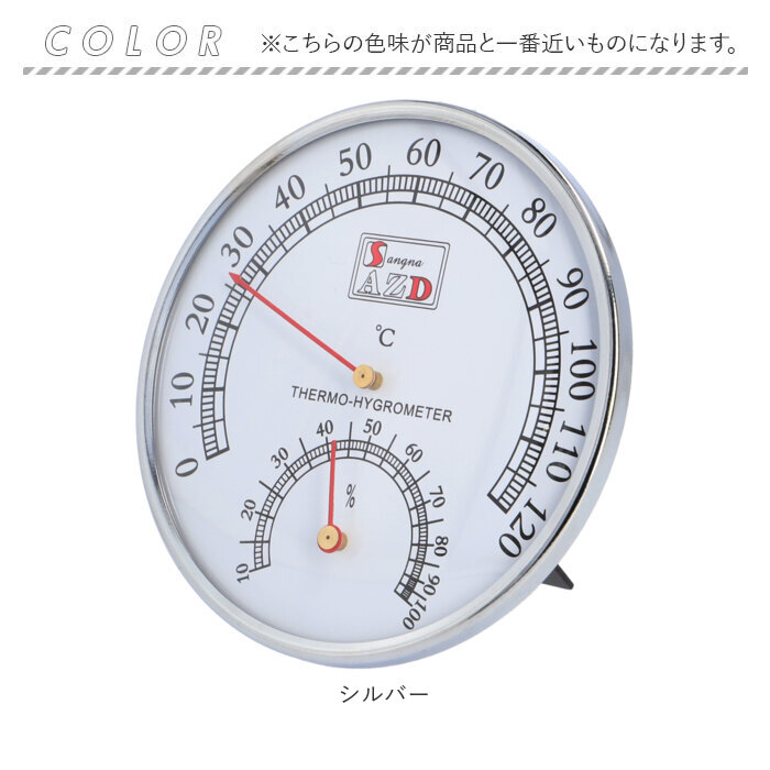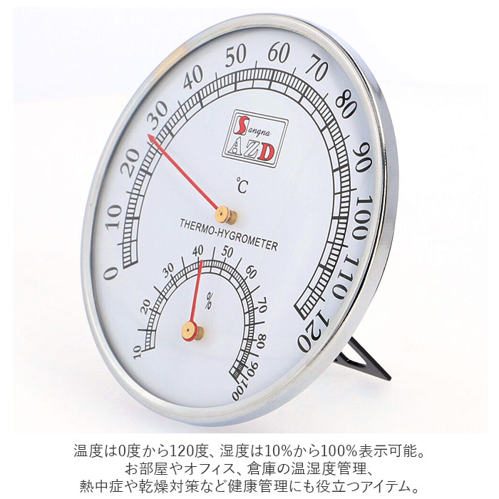 | ・サウナや浴室で活躍する温湿度計。 ・温度と湿度がひと目でわかる、読みやすい文字盤デザイン。 ・温度は0度から120度、湿度は10%から100%表示可能。 ・場所をとらないコンパクトサイズ◎持ち運びもラクラク。 ・背面にフック穴とスタンド付きで、壁掛けもスタンド置きもOK。お好みや取り付け場所によって使い分けできるのが嬉しい! ・お部屋やオフィス、倉庫の温湿度管理、熱中症や乾燥対策など健康管理にも役立つアイテム。 |