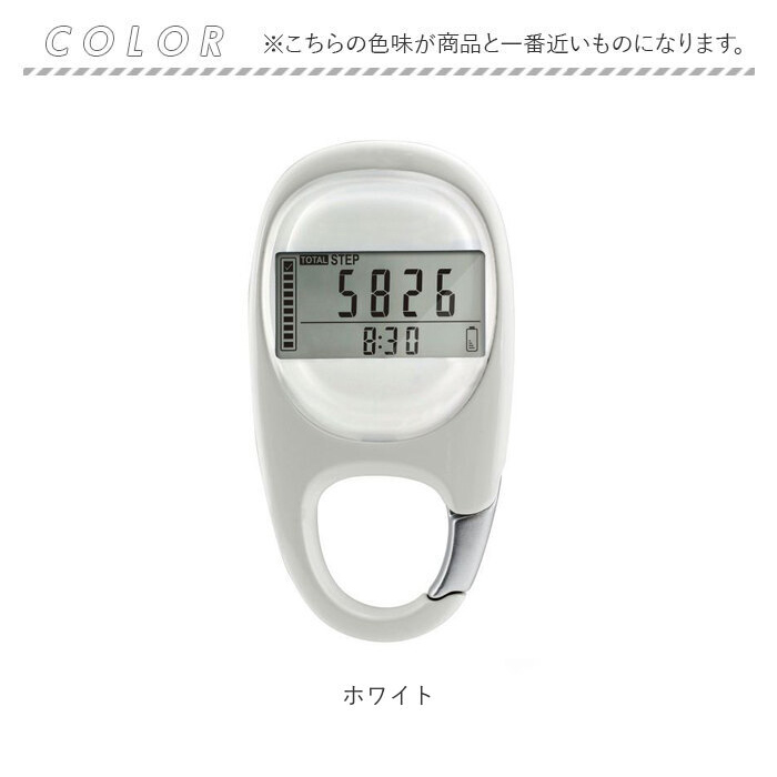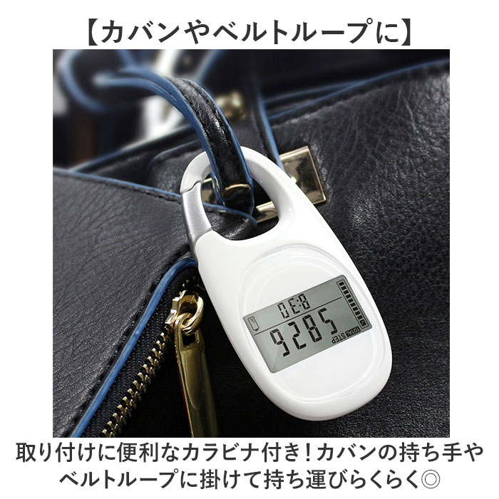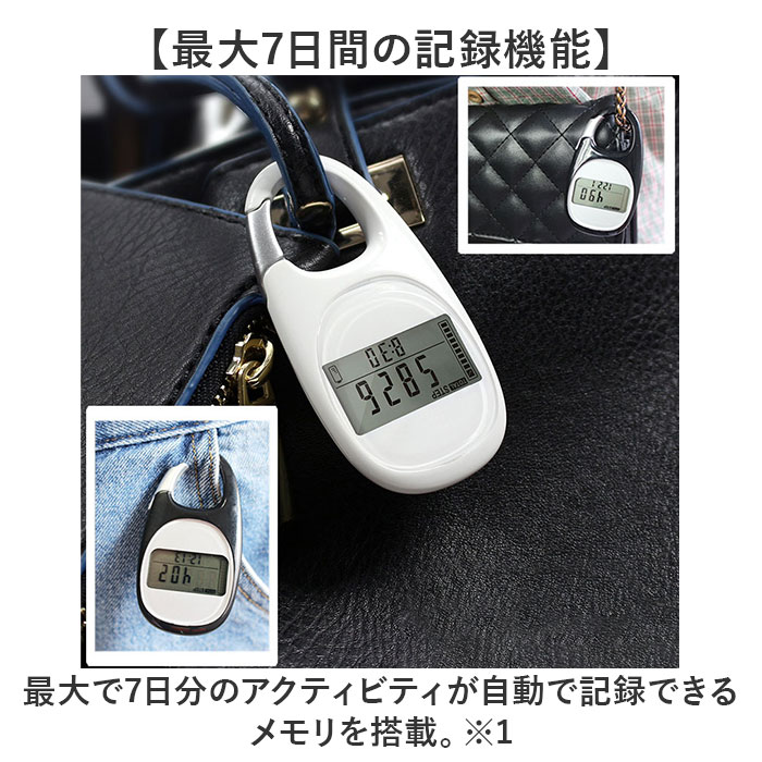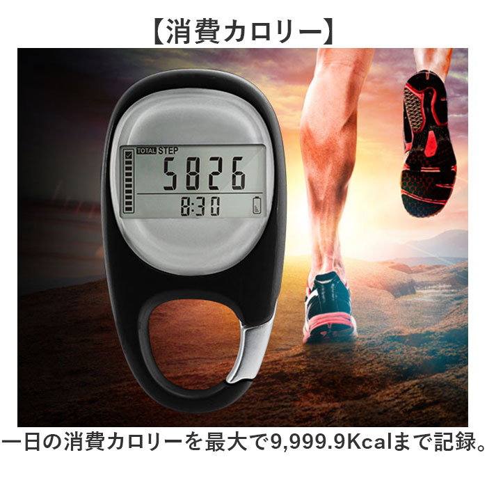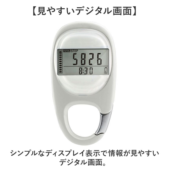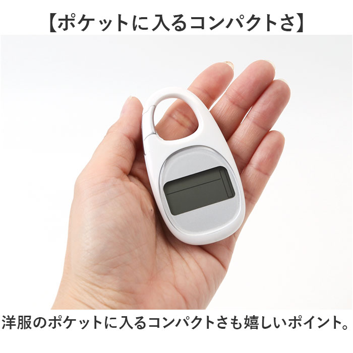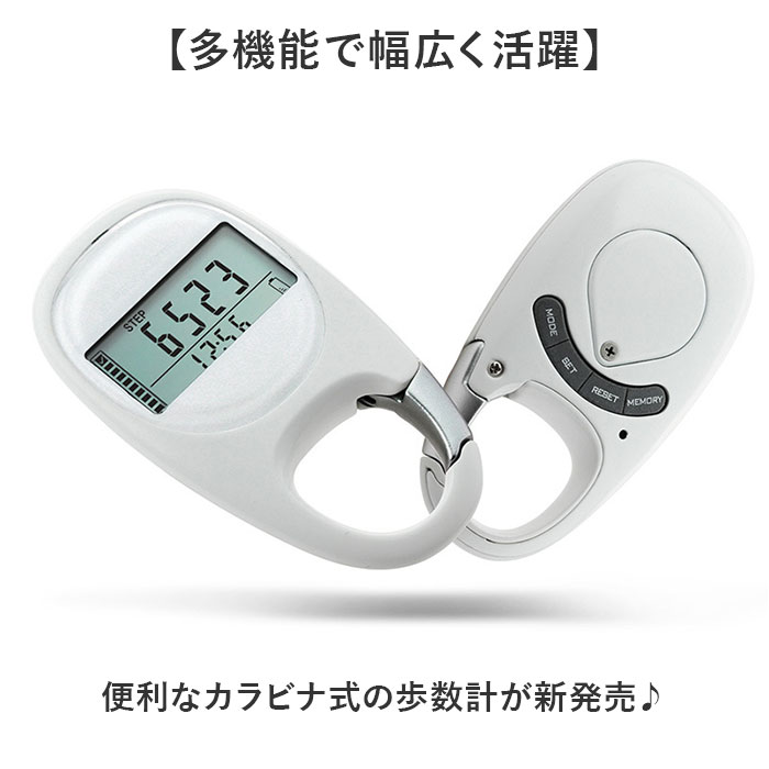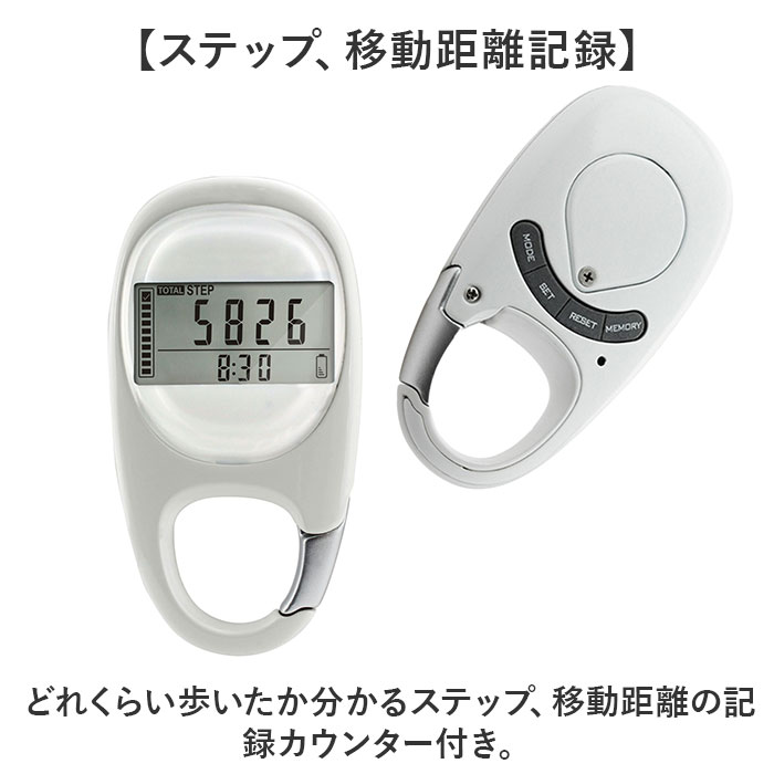 | 【多機能で幅広く活躍】 ・便利なカラビナ式の歩数計が新発売♪ 【カバンやベルトループに】 ・取り付けに便利なカラビナ付き!カバンの持ち手やベルトループに掛けて持ち運びらくらく◎ 【ポケットに入るコンパクトさ】 ・洋服のポケットに入るコンパクトさも嬉しいポイント。 【見やすいデジタル画面】 ・シンプルなディスプレイ表示で情報が見やすいデジタル画面。 【時計機能】 ・12or24時間形式で表示可能な時計機能。 【消費カロリー】 ・一日の消費カロリーを最大で9,999.9Kcalまで記録。 【ステップ、移動距離記録】 ・どれくらい歩いたか分かるステップ、移動距離の記録カウンター付き。 【最大7日間の記録機能】 ・最大で7日分のアクティビティが自動で記録できるメモリを搭載。※1 【自動OFF機能】 ・30秒間動きが検知されないと自動でスリープモードに変わる。 【スマホやアプリいらず】 ・スマホやアプリの設定がいらないのでお子さまや高齢者の方にも使いやすい。 【繰り返し使える電池式】 ・電池で繰り返し使えるので充電の手間がないのもポイント。※2 【電池交換の時期がわかる】 ・画面右下のバッテリーマークで電池の残量がわかる仕組み。交換の時期がわかりやすい。 【注意点】 ・※1 記録はAM12時でリセットされます。 ・※2 使用電池:CR-2032×1個 ・ モニター用電池付属×1個 |
