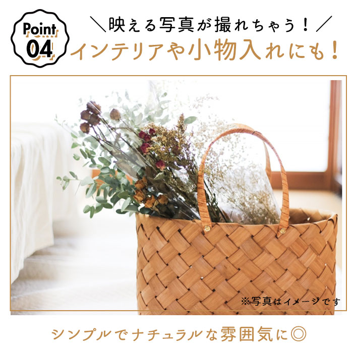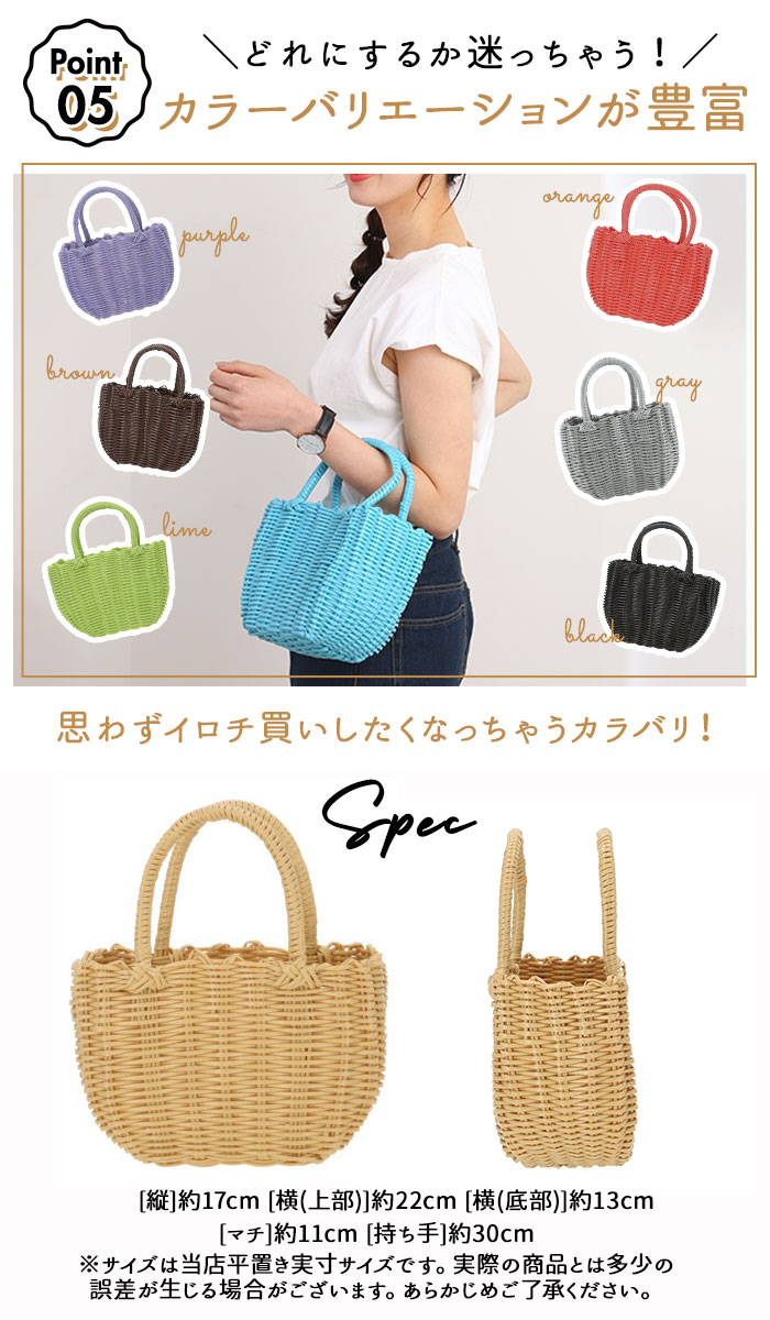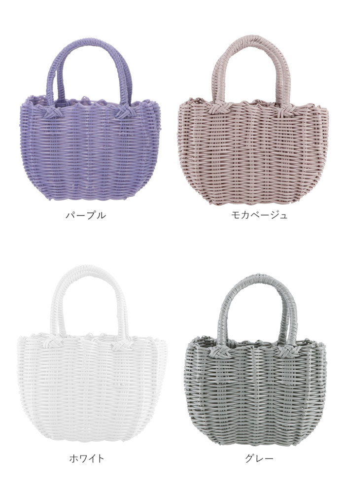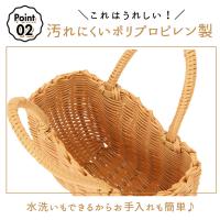 | ・お弁当用バッグやレジャーにも最適!ポリプロピレン製のプチサイズのカゴバッグが登場。 ・ポリプロピレン製なので水洗いOK!持ち手部や底部が汚れにくいのがうれしい。 ・浴衣用バッグとして身につけるのも◎ ・インテリアにも映える色使いなのでお部屋に飾ったり、小物の収納ボックスとしても使用OK。 ・色の種類が豊富なのでお好みのバッグが見つかるはず。 |