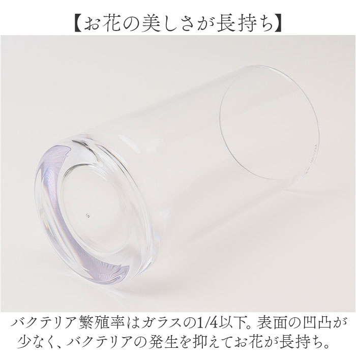 | 商品説明 | 【シンプルで美しい、割れない花瓶】 ・ガラスのような透明感に、驚きの耐衝撃性をプラス!「PVシリンダー W10×H20cmタイプ」が新登場。 【最高の耐衝撃性を誇る、ポリカ素材】 ・最高の耐衝撃性を持つポリカーボネート素材でシンプルに仕上げた、シリンダー型フラワーベース。 【落としても割れない、欠けない】 ・PEやアクリルの50倍もの耐衝撃性を誇り、落としたり、ハンマーで叩いても割れないタフさが自慢。 【シンメトリーなルックス】 ・個体差のあるガラスに比べ、寸分の狂いのない規格通りの均一成型ができるのもポリカ素材の特徴。 【ガラスのような輝きと美しさ】 ・透明感はまるでガラスそのもの。可視光線透過率約80%〜90%の透明度で奥行きのある空間を演出。 ※ホワイト・ブラックなど、一部クリアタイプではない商品もございます。 【お花の美しさが長持ち】 ・バクテリア繁殖率はガラスの1/4以下。表面の凹凸が少なく、バクテリアの発生を抑えてお花が長持ち。 【お手入れ時や持ち運び時も安心】 ・ガラスよりも軽量。倒した時に割れる恐れもないので、水替え等のお手入れや持ち運び時も安心。 【ダイナミックなアレンジが可能】 ・カサブランカやカラー等すらりと背の高いお花を無造作に活けても様になる、安定感のあるフォルム。 【ディスプレイの幅がグンと広がる】 ・ガラス製品では難しい穴あけ等の加工が可能!電動ドリルで穴を開け、紐で吊る等アレンジも自在。 |