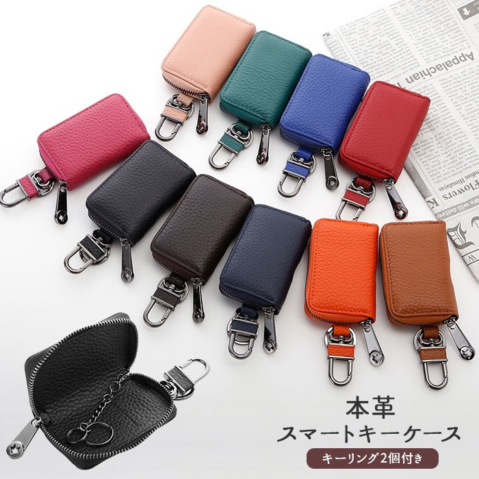 | ・色鮮やかなボディには本革を使用!自動車用スマートキーに対応した、コンパクトなキーケース。 ・丈夫で柔らかな質感の本格レザー製。メタリック調のファスナーや同色の金属パーツと合わせたシックで高級感ある仕上がり。 ・ファスナーは大きく開くラウンドタイプで、スムーズにラクラク開閉。 ・ケース内部に自動車のスマートキー(キーレスキー)がちょうど収まるサイズ。各自動車メーカーのスマートキーサイズに対応。 ・スマートキーの落下を防止するチェーン付き。チェーンの先にリングが二つ付属しているので、スマートキーとご自宅の鍵等、2つの鍵を収納可能。 ・360度回転するカラビナで、バッグの持ち手やショルダーベルト、パンツのベルトループ等に取り付けて使用できる! ・旬の果実のような色鮮やかなカラーバリエーションが魅力。男性にも女性にも使いやすいユニセックス仕様。 |