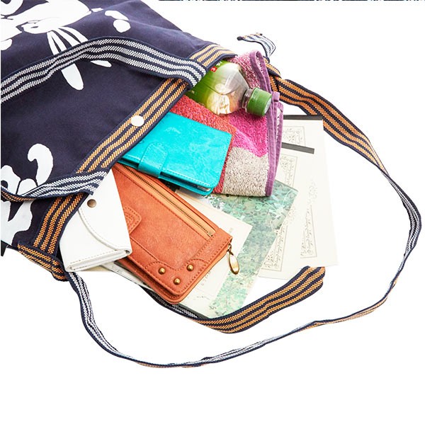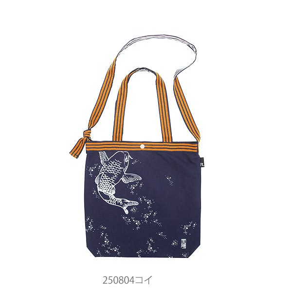 | 個性的な和柄が楽しい!昔ながらの前掛けがトートバッグになりました。柄は着色抜染という方法で印刷されています。落ち着いた風合いで、使い込むほどいい味が出そう♪ポケットは外側に1つ、内側に仕切り付きポケットが1つ。手持ちとショルダーバッグの2wayでお使いいただけます。 |