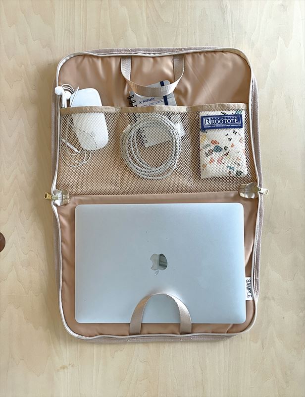 | ・ノート型PC用トート「ピモッテ」。ワークスタイルが多様化している今、モバイル機器の携帯は欠かせません。シーンに応じてバッグのインナーにも、そのまま持ち歩けるトートにも…。 ・合皮素材のキルティング加工。光沢感のある持ち手テープがポイント!適度なクッション性と持ち運びやすさ。デバイスをしっかりと保護しながら、かさばりにくい。薄型&軽量。ビジネスバッグや通勤カバンのインナーバッグとしても大活躍。 ・内側に納まるハンドルがあるため、メインのバッグからの出し入れもラクラクです。コの字型についたファスナーで、縦横どちらからも中身を出し入れできる仕様。 13インチのノート型PC対応。内側には、3つに区切られたメッシュポケット付き。マウスやコードなどの周辺機器をきれいに分けて収納できます。 ・外側には、A4サイズも収納可能なルーポケットがあり、便利です。中身の飛び出しを防ぐループベルト付きで安心です。お財布やスマホなどの小物も一緒に入れて、スムーズに出し入れが可能です。 ・別売りのストラップをつければ、ショルダーバッグとしてもお使いいただけます。肩に掛けて楽に移動することが可能です。 |
