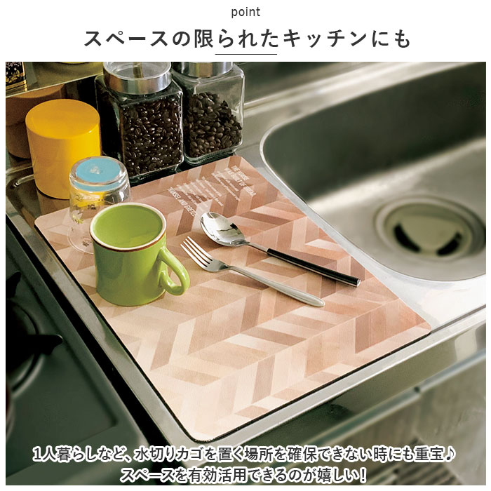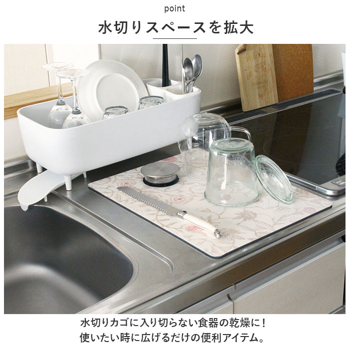 | ・使いたい時にだけ、サッと広げてスッと吸収!Sahlla(サアラ)水切りディッシュマットが新登場。 【水切りスペースを拡大】 ・水切りカゴに入り切らない食器の乾燥に!使いたい時に広げるだけの便利アイテム。 【スペースの限られたキッチンにも】 ・1人暮らしなど、水切りカゴを置く場所を確保できない時にも重宝♪スペースを有効活用できるのが嬉しい! 【抜群の吸収力】 ・食器の水気をすぐに吸水し、速乾性ばっちり。ソフトな質感なので衝撃も吸収して、傷つきからガード◎(※使用環境などにより、吸水性や速乾速度が変化する場合がございます。) 【うれしいフリーカット仕様】 ・そのまま使うのはもちろん、お好みの大きさにカットすることも可能。キッチンのスペースに合わせてアレンジ自在。 【お手入れラクラク】 ・汚れが気になったら手洗いできて衛生的!水切りカゴの水垢落としなど、面倒なお手入れ不要で忙しい毎日の味方☆ 【お気に入りえをチョイス】 ・キッチンに馴染みやすい、ナチュラルなデザインをラインナップ。使い勝手の良い40cm×30cmサイズ。 |