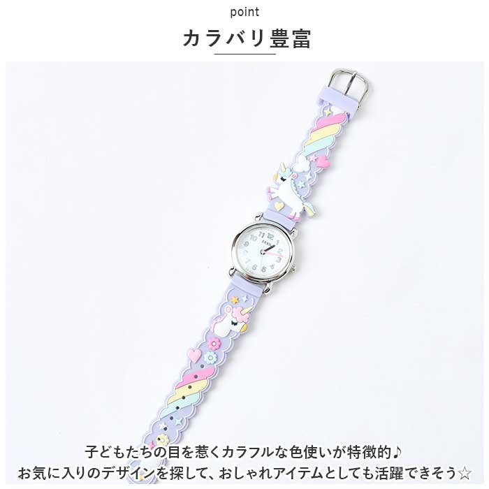| ・お子さまの初めての腕時計にピッタリなキッズウォッチが発売♪ 【カラバリ豊富】 ・子どもたちの目を惹くカラフルな色使いが特徴的♪お気に入りのデザインを探して、おしゃれアイテムとしても活躍できそう☆ 【読みやすい文字盤】 ・装飾がないシンプルなアナログ文字盤と文字が大きく見える凸型のレンズで時間を視認しやすいのも魅力的♪ 【日本製ムーブメント】 ・静かに正確な時を刻む。確かな性能を誇る、安心と信頼の日本製高性能ムーブメントを採用。 【成長しても使える】 ・腕まわりは、約13.5cm-約17cmまで対応。大きくなってもお気に入りの時計がずっと使える! 【ギフトにも】 ・プレゼントや記念品などにもおすすめ♪ |