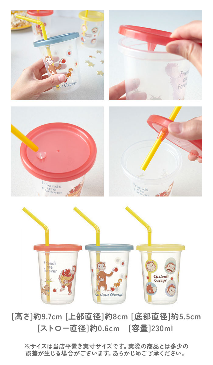 | ・フタがついてこぼれにくい!人気キャラクターのストロー付タンブラー(230ml)3個セット ・ストローは、市販の直径6mmタイプのものが使用可能 ・食洗機対応!安心の日本製。(※電子レンジでの使用はお避け下さい。) ・おうちでの普段使いはもちろん、レジャーやアウトドア、パーティなどでも大活躍☆※フタは完全密封ではありません。状況によっては倒れた際に中身がこぼれますのでご注意ください。 ・家族やお友達とお揃いで使うのも楽しい♪プレゼントにおすすめ! |