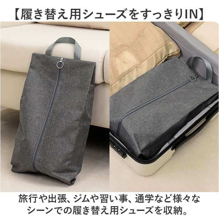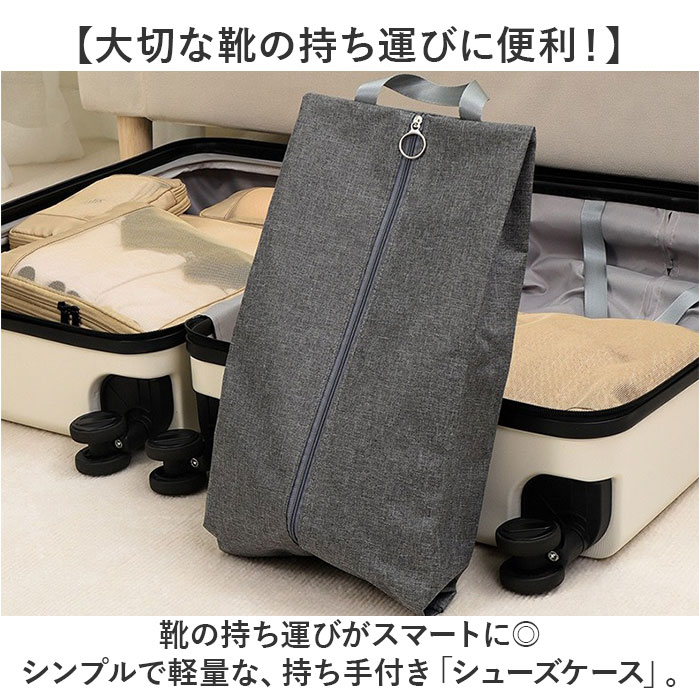 | 【大切な靴の持ち運びに便利!】 ・靴の持ち運びがスマートに◎シンプルで軽量な、持ち手付き「シューズケース」。 【履き替え用シューズをすっきりIN】 ・旅行や出張、ジムや習い事、通学など様々なシーンでの履き替え用シューズを収納。 【ガバっと開いて出し入れラクラク】 ・中央のファスナーを使ってガバっとオープン。出し入れがスムーズ! 【傷つきを防ぎ、色んな靴を収納可能】 ・丈夫なオックスフォード生地で、他の荷物と擦れても靴を傷つけにくい◎大きめの靴もOK。 【うれしい撥水性をプラス】 ・内側は、水滴や汚れをサッと弾く撥水生地。汚れても拭き取りやすく、お手入れも簡単。 (※)完全防水ではありません。 【取り出しやすく手持ちもラクラク】 ・上部に持ち手付き。バッグから取り出しやすく、手持ちもできるつくり。 【持つ人を選ばないデザイン】 ・年代や性別問わず使いやすいデザインと、落ち着きのあるカラー。家族で色違い揃えも。 |