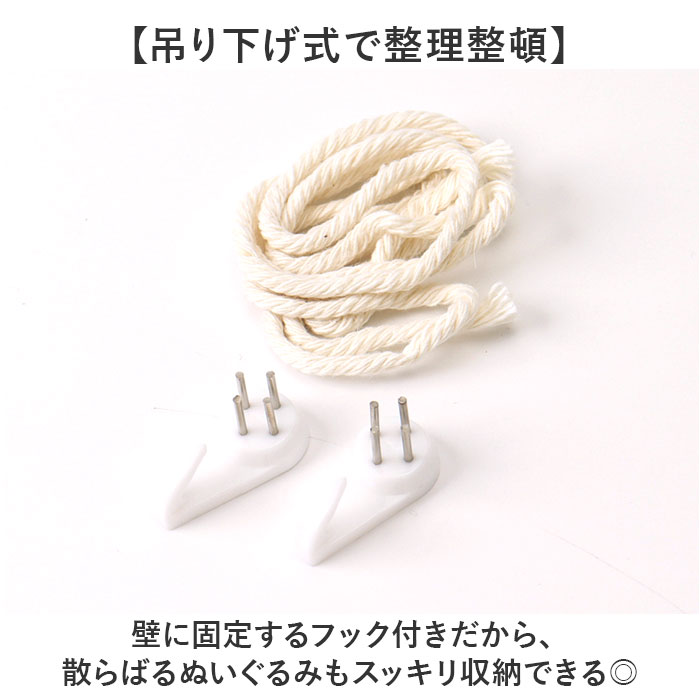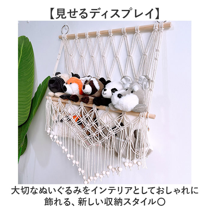 | 【見せる収納でスッキリ】 ・ぬいぐるみをおしゃれに飾る吊り下げハンモック。 【吊り下げ式で整理整頓】 ・リング付きで壁に簡単固定できるから、散らばるぬいぐるみもスッキリ収納◎ 【楽々お片付け習慣】 ・お子さまでもポンと入れるだけで片付け完了だから、整理整頓が楽しくなる♪ 【ナチュラル素材で安心】 ・木と綿のやさしい素材を使用し、お部屋に温かみのある雰囲気をプラス。 【見せるディスプレイ】 ・大切なぬいぐるみをインテリアとしておしゃれに飾れる、新しい収納スタイル〇 |