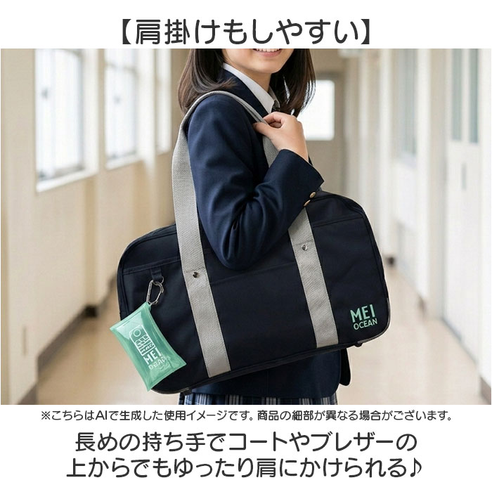 | 【MEI OCEANで通学革命】 ・収納力も耐久性も備えたブランドスクバで毎日をもっと快適に。 【A4もPCもかんたん整理】 ・内部にオープンポケット3つとPCポケットを完備し教材もガジェットもすっきり整頓♪ 【クリアポーチが魅力】 ・前面左のDカンにはブランドロゴ入りクリアポーチ。小物収納とおしゃれを両立◎ 【前面ポケットで即アクセス】 ・フロントのファスナーとオープンの2種ポケットでパスケースやスマホもさっと取り出し! 【ロゴが映えるブランドスクバ】 ・前面の刺繍とダブルファスナーに刻印されたMEI OCEANのロゴが上品なアクセント。 【底鋲と底板で型崩れ知らず】 4つの底鋲が地面の汚れからバッグを守り、さらに底板入りでシルエットも美しくキープ〇 【肩掛けもしやすい】 ・長めの持ち手でコートやブレザーの上からでもゆったり肩にかけられる♪ |