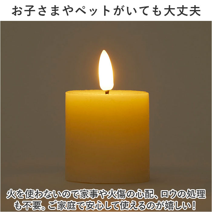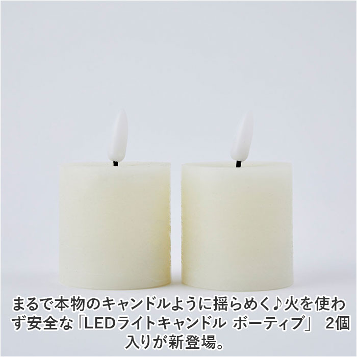 | ・まるで本物のキャンドルように揺らめく♪火を使わず安全な「LEDライトキャンドル ボーティブ」 2個入りが新登場。 【本物顔負けのLED仕様】 ・キャンドル部分はパラフィンワックス加工でロウソクの質感を。点灯部には炎型のチップを搭載し、火のような揺らめきを再現。 【お子さまやペットがいても大丈夫】 ・火を使わないので家事や火傷の心配、ロウの処理も不要。ご家庭で安心して使えるのが嬉しい! 【灯りで空間をおしゃれに演出】 ・インテリアとして使うのはもちろん、パーティーやイベントに。結婚式のウェルカムスペースにもぴったり! 【場所を選ばず使える電池式】 ・ボタン電池(CR2032)内蔵で、連続点灯時間は約160時間。コンセントいらずで、キャンプなど屋外シーンでも!(※電池の種類や使用環境により異なります。) |
